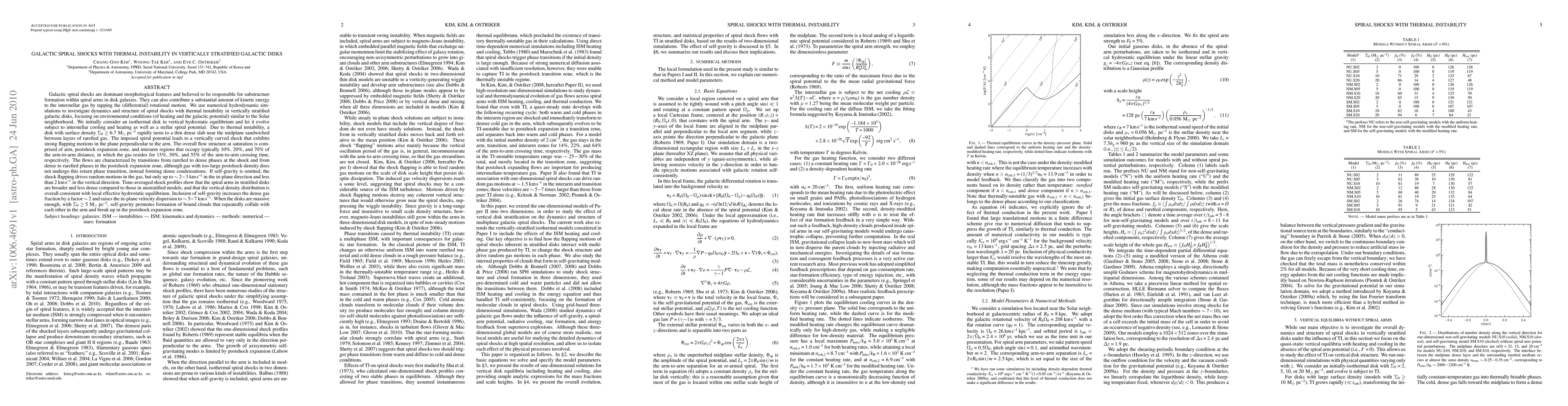 This paper uses numerical hydrodynamic simulations to explore the dynamics and structure of spiral shocks in vertically stratified galactic disks, focusing on conditions similar to the Solar neighborhood. The study reveals that spiral shocks exhibit strong flapping motions and transitions between rarefied and dense gas phases, contributing to substructure formation and kinetic energy in the interstellar medium.