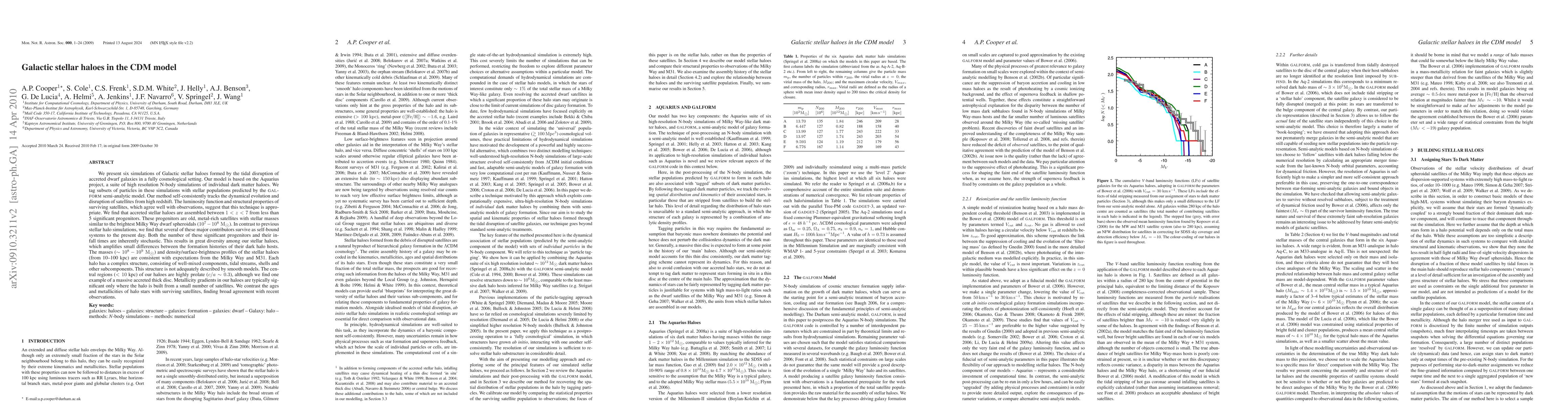 disruption of accreted dwarf galaxies in a fully cosmological setting. Our