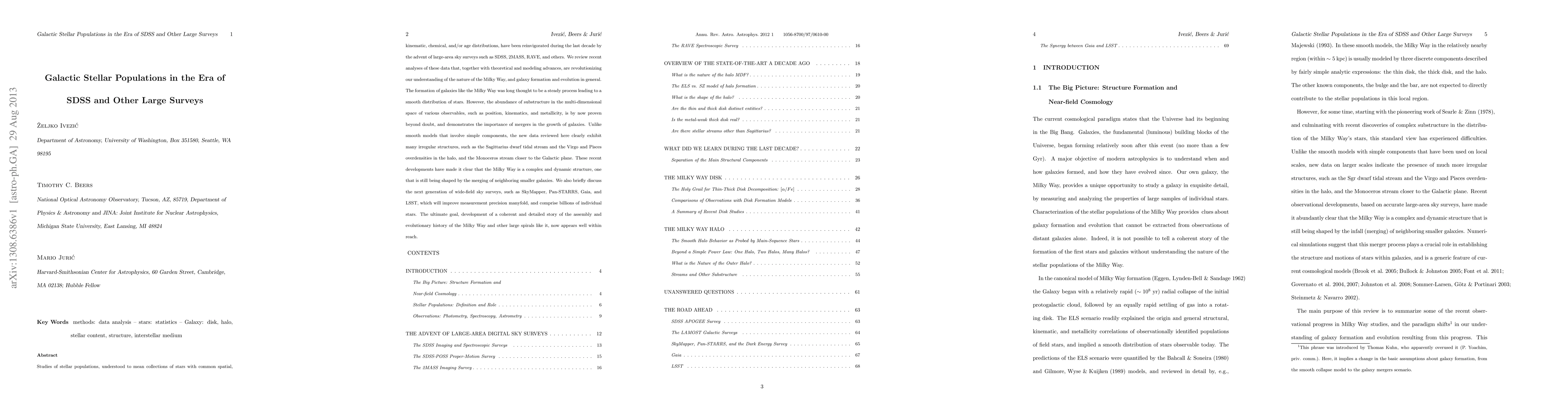 Studies of stellar populations, understood to mean collections of stars with common spatial, kinematic, chemical, and/or age distributions, have been reinvigorated during the last decade by the advent of large-area sky surveys such as SDSS, 2MASS, RAVE, and others. We review recent analyses of these data that, together with theoretical and modeling advances, are revolutionizing our understanding of the nature of the Milky Way, and galaxy formation and evolution in general. The formation of galaxies like the Milky Way was long thought to be a steady process leading to a smooth distribution of stars. However, the abundance of substructure in the multi-dimensional space of various observables, such as position, kinematics, and metallicity, is by now proven beyond doubt, and demonstrates the importance of mergers in the growth of galaxies. Unlike smooth models that involve simple components, the new data reviewed here clearly show many irregular structures, such as the Sagittarius dwarf tidal stream and the Virgo and Pisces overdensities in the halo, and the Monoceros stream closer to the Galactic plane. These recent developments have made it clear that the Milky Way is a complex and dynamical structure, one that is still being shaped by the merging of neighboring smaller galaxies. We also briefly discuss the next generation of wide-field sky surveys, such as SkyMapper, Pan-STARRS, Gaia and LSST, which will improve measurement precision manyfold, and comprise billions of individual stars. The ultimate goal, development of a coherent and detailed story of the assembly and evolutionary history of the Milky Way and other large spirals like it, now appears well within reach.