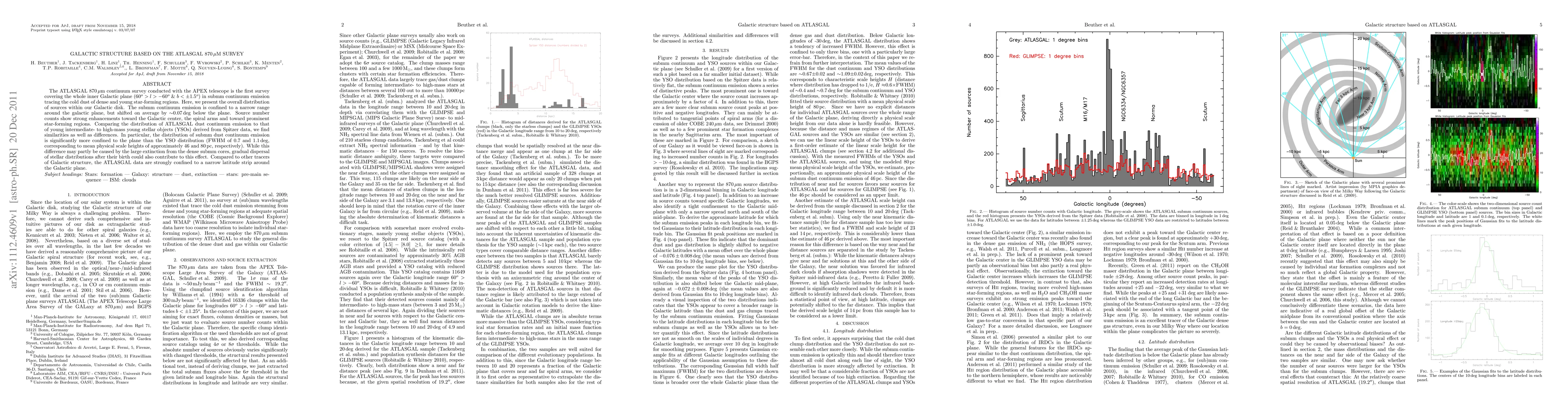 The ATLASGAL survey reveals a narrow range of submm continuum emission confined to the Galactic plane, with enhancements towards the center and spiral arms.