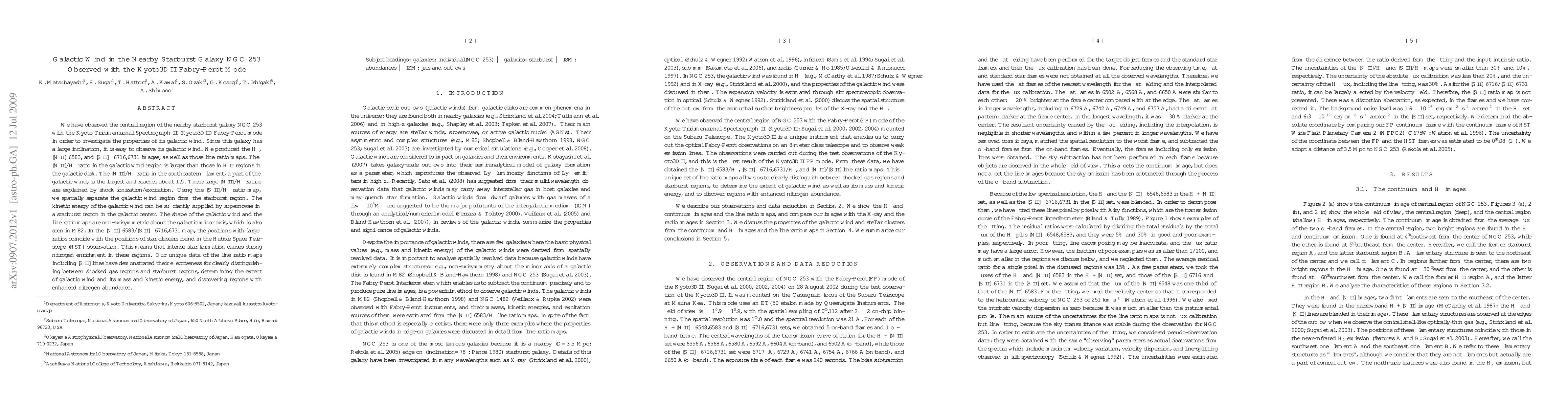 This study uses the Kyoto3DII Fabry-Perot mode to observe NGC 253's galactic wind, revealing non-axisymmetric wind shapes and enhanced nitrogen enrichment in star-forming regions, suggesting supernovae supply wind kinetic energy. Line ratio maps effectively distinguish between shocked and starburst regions.