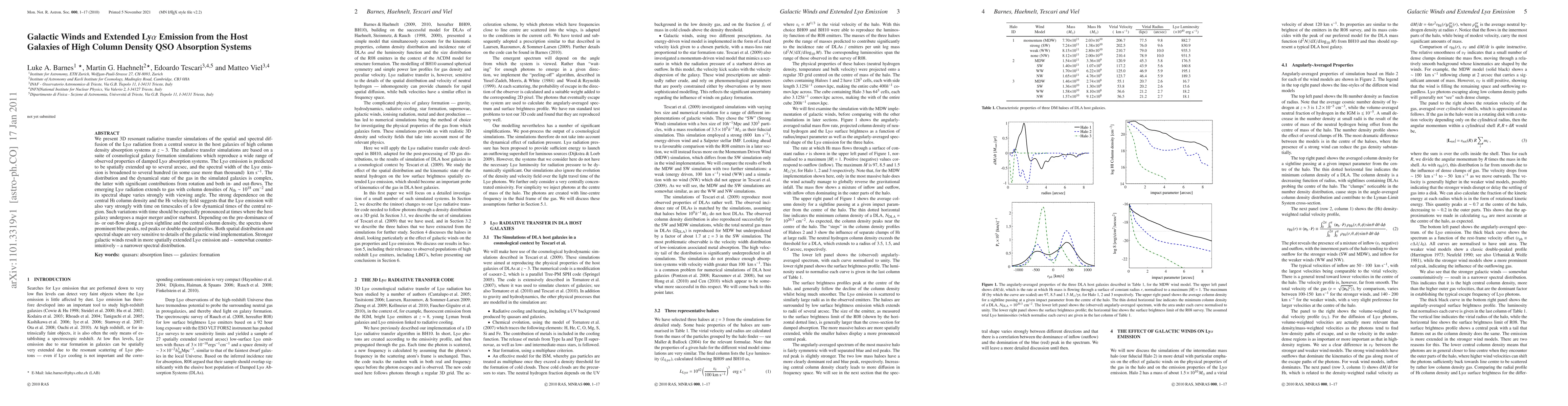 This paper uses 3D radiative transfer simulations to study the spatial and spectral diffusion of Lya radiation in high column density QSO absorption systems at z ~ 3. The simulations show that Lya emission is spatially extended and spectrally broadened, with significant variations in shape and intensity linked to galactic winds and gas dynamics.