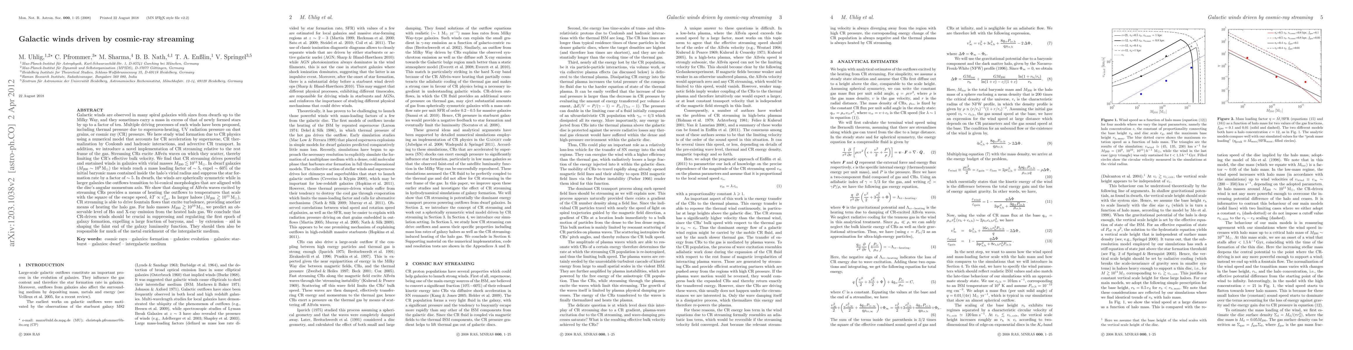 This paper explores galactic winds driven by cosmic-ray streaming in spiral galaxies, finding that cosmic rays can drive powerful winds in galaxies with virial masses below 10^11 Msun. In dwarf galaxies, these winds expel a significant fraction of baryonic mass and suppress star formation, while in larger galaxies, they transition to bi-conical outflows aligned with the disc's angular momentum axis.