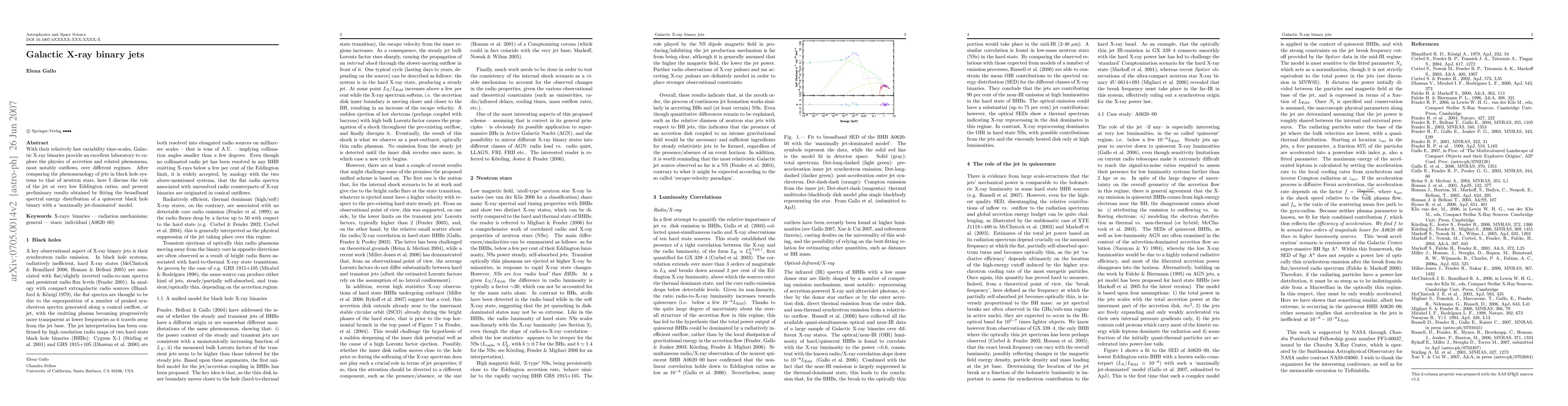 This paper explores the physics of accretion and outflows in Galactic X-ray binaries, comparing black hole and neutron star systems. It focuses on the role of jets at low Eddington ratios and presents preliminary results from a model fitting the spectral energy distribution of a quiescent black hole binary.
