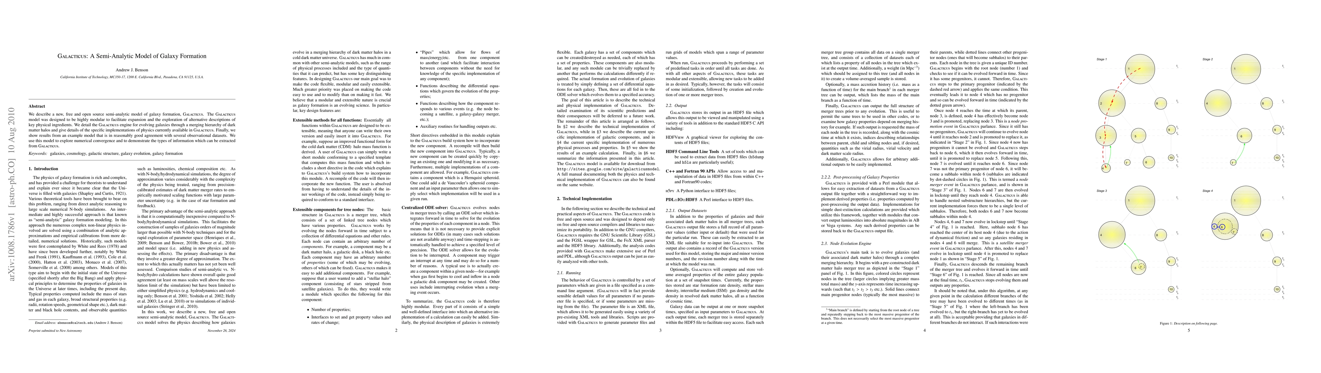 Galacticus is a free, modular semi-analytic model for galaxy formation that simulates the evolution of galaxies through dark matter halo mergers. It demonstrates good agreement with observational data and explores numerical convergence, showcasing its potential for diverse physical implementations.