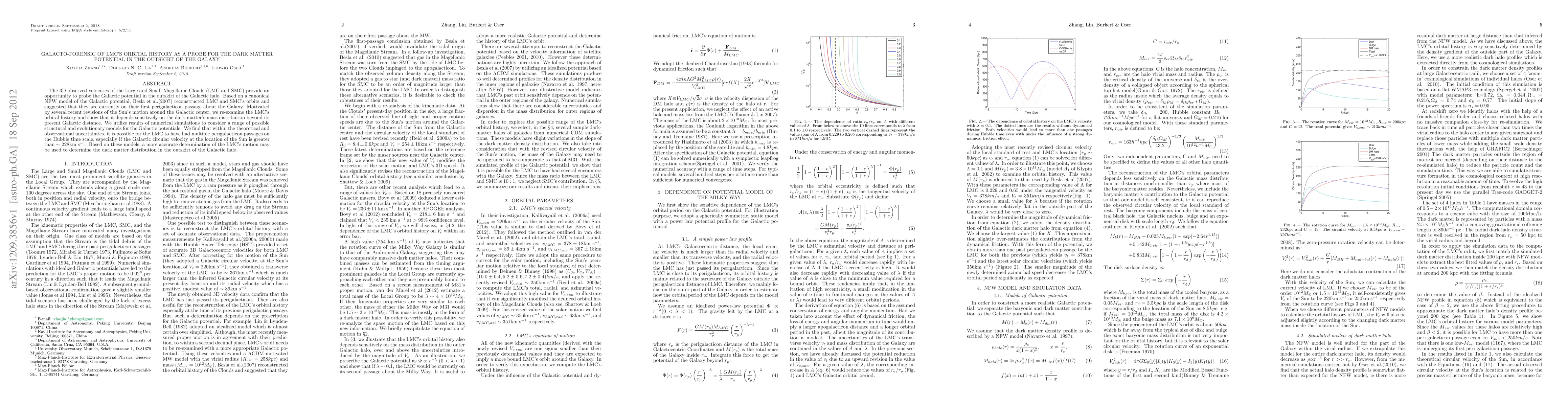 The 3D observed velocities of the Large and Small Magellanic Clouds(LMC and SMC) provide an opportunity to probe the Galactic potential in the outskirt of the Galactic halo. Based on a canonical NFW model of the Galactic potential, Besla et al.(2007) reconstructed LMC and SMC's orbits and suggested that they are currently on their first perigalacticon passage about the Galaxy. Motivated by several recent revisions of the Sun's motion around the Galactic center, we re-examine the LMC's orbital history and show that it depends sensitively on the dark-matter's mass distribution beyond its present Galactic distance. We utilize results of numerical simulations to consider a range of possible structural and evolutionary models for the Galactic potentials. We find that within the theoretical and observational uncertainties, it is possible for the LMC to have had multiple perigalacticon passages on the Hubble time scale, especially if the Galactic circular velocity at the location of the Sun is greater than $\sim 228$km s$^{-1}$. Based on these models, a more accurate determination of the LMC's motion may be used to determine the dark matter distribution in the outskirt of the Galactic halo.