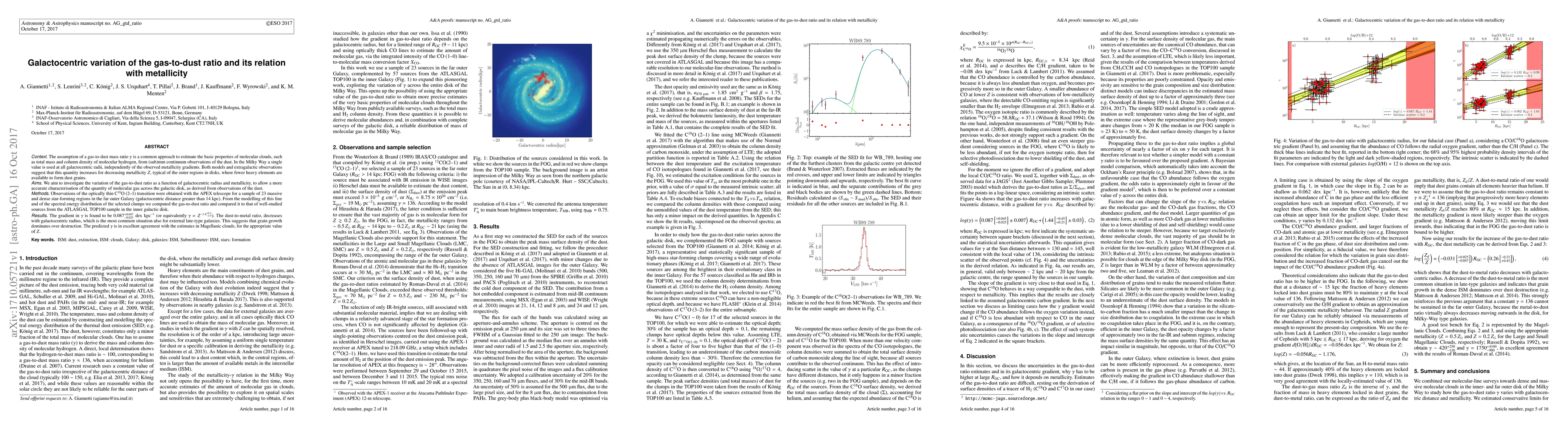 Researchers studied how gas-to-dust ratio varies with distance from center of galaxy and metal content, finding a decrease in gas-to-dust ratio with increasing galactocentric radius and metallicity.
