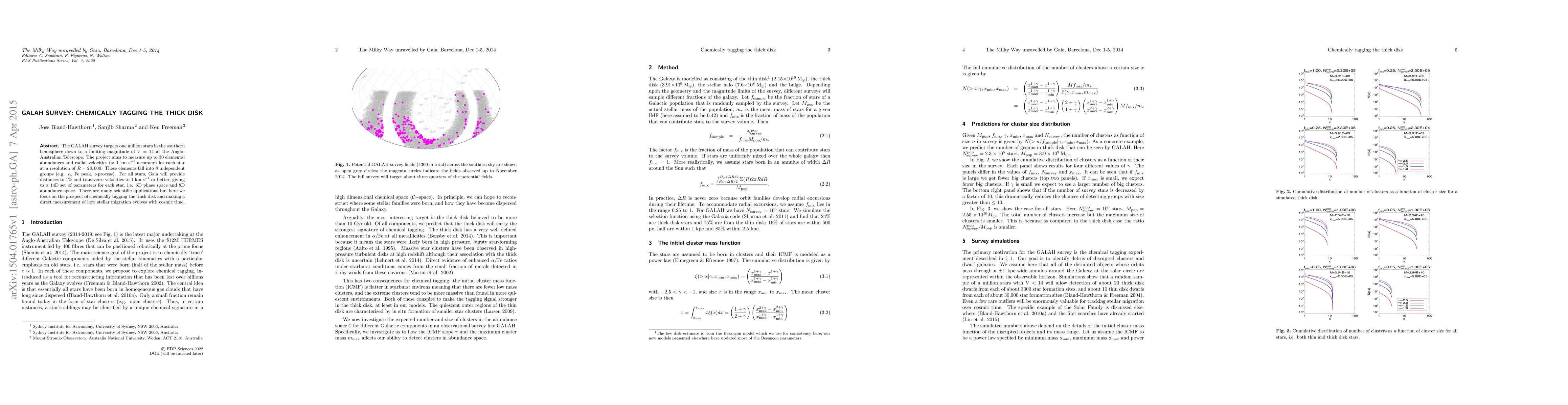 The GALAH survey aims to measure elemental abundances and radial velocities of one million southern hemisphere stars, providing a 14D dataset for each star. The study focuses on chemically tagging the thick disk and investigating stellar migration evolution over cosmic time.