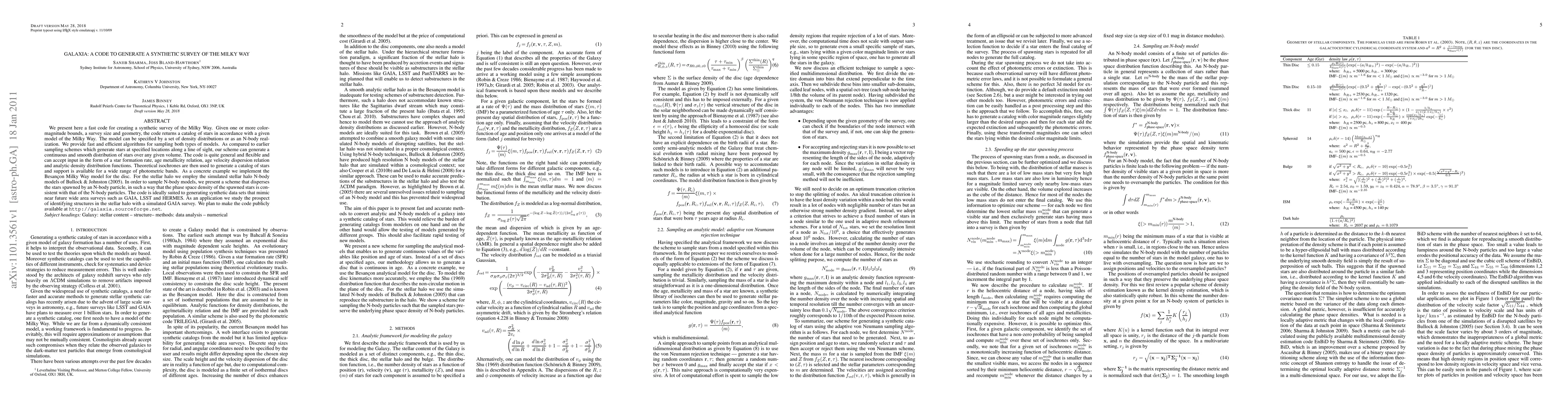 We present here a fast code for creating a synthetic survey of the Milky Way. Given one or more color-magnitude bounds, a survey size and geometry, the code returns a catalog of stars in accordance with a given model of the Milky Way. The model can be specified by a set of density distributions or as an N-body realization. We provide fast and efficient algorithms for sampling both types of models. As compared to earlier sampling schemes which generate stars at specified locations along a line of sight, our scheme can generate a continuous and smooth distribution of stars over any given volume. The code is quite general and flexible and can accept input in the form of a star formation rate, age metallicity relation, age velocity dispersion relation and analytic density distribution functions. Theoretical isochrones are then used to generate a catalog of stars and support is available for a wide range of photometric bands. As a concrete example we implement the Besancon Milky Way model for the disc. For the stellar halo we employ the simulated stellar halo N-body models of Bullock & Johnston (2005). In order to sample N-body models, we present a scheme that disperses the stars spawned by an N-body particle, in such a way that the phase space density of the spawned stars is consistent with that of the N-body particles. The code is ideally suited to generating synthetic data sets that mimic near future wide area surveys such as GAIA, LSST and HERMES. As an application we study the prospect of identifying structures in the stellar halo with a simulated GAIA survey. We plan to make the code publicly available at http://galaxia.sourceforge.net.