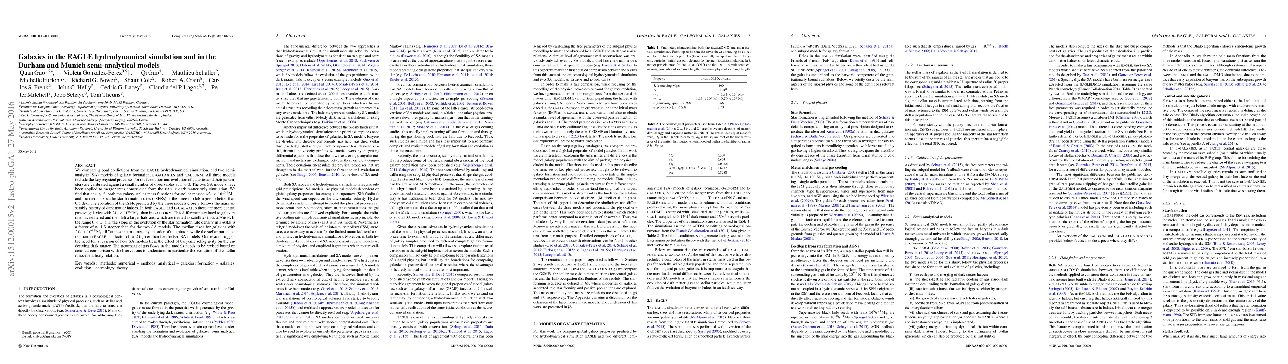 The research compares global galaxy predictions from the EAGLE hydrodynamical simulation and two semi-analytic models, L-GALAXIES and GALFORM. These models include key physical processes for galaxy formation and their parameters are calibrated against observables at $z\approx 0$.