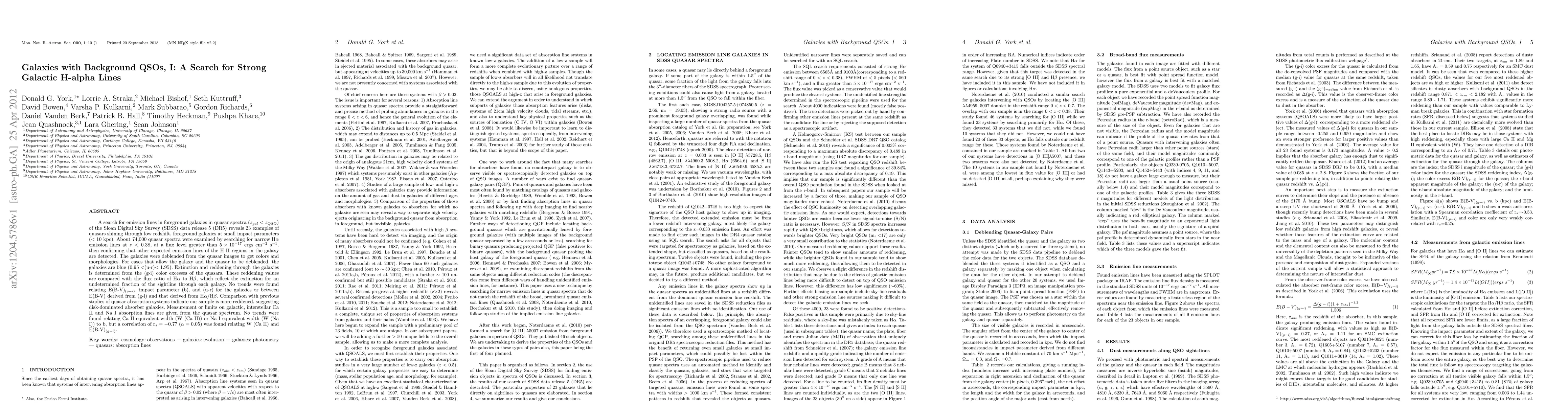 The study examined 74,000 quasar spectra from SDSS DR5, searching for narrow Hα emission lines in foreground galaxies at low redshifts (< 0.38) to identify quasars passing through foreground galaxies at small impact parameters (< 10 kpc). Galaxies were deblended for colors and morphologies, and extinction was determined from (g-i) color excesses of quasars.