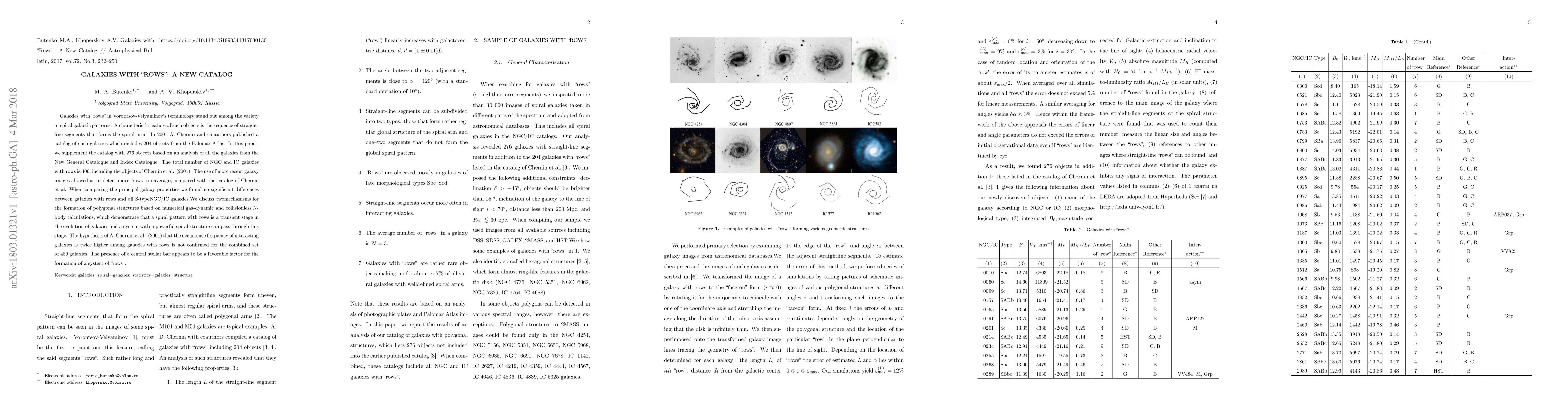 Galaxies with 'rows' in Vorontsov-Velyaminov's terminology stand out among the variety of spiral galactic patterns. A characteristic feature of such objects is the sequence of straight-line segments that forms the spiral arm. In 2001 A. Chernin and co-authors published a catalog of such galaxies which includes 204 objects from the Palomar Atlas. In this paper, we supplement the catalog with 276 objects based on an analysis of all the galaxies from the New General Catalogue and Index Catalogue. The total number of NGC and IC galaxies with rows is 406, including the objects of Chernin et al. (2001). The use of more recent galaxy images allowed us to detect more 'rows' on average, compared with the catalog of Chernin et al. When comparing the principal galaxy properties we found no significant differences between galaxies with rows and all S-type NGC/IC galaxies.We discuss twomechanisms for the formation of polygonal structures based on numerical gas-dynamic and collisionless N-body calculations, which demonstrate that a spiral pattern with rows is a transient stage in the evolution of galaxies and a system with a powerful spiral structure can pass through this stage. The hypothesis of A. Chernin et al. (2001) that the occurrence frequency of interacting galaxies is twice higher among galaxies with rows is not confirmed for the combined set of 480 galaxies. The presence of a central stellar bar appears to be a favorable factor for the formation of a system of 'rows'.