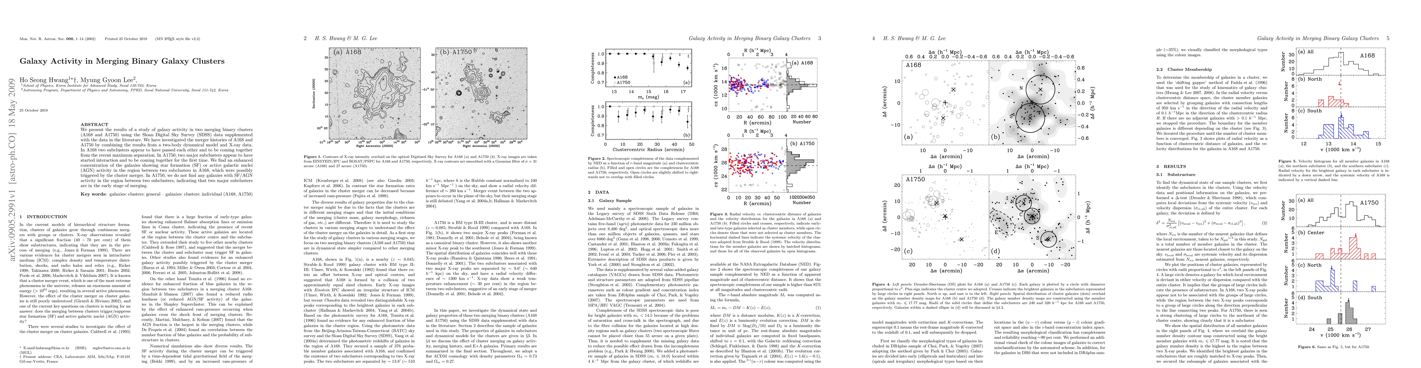 This study examines galaxy activity in two merging binary galaxy clusters, A168 and A1750, revealing enhanced star formation and active galactic nuclei activity in A168's merging subclusters, while A1750 shows no such activity, suggesting it is in an early merging stage.