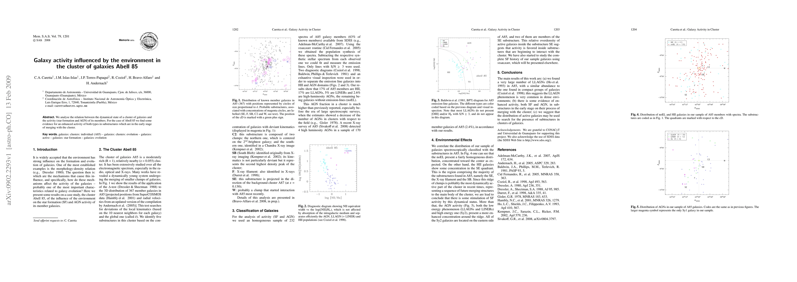 We analyse the relation between the dynamical state of a cluster of galaxies and the activity (star formation and AGN) of its members. For the case of Abell 85 we find some evidence for an enhanced activity of both types in substructures which are in the early stage of merging with the cluster.