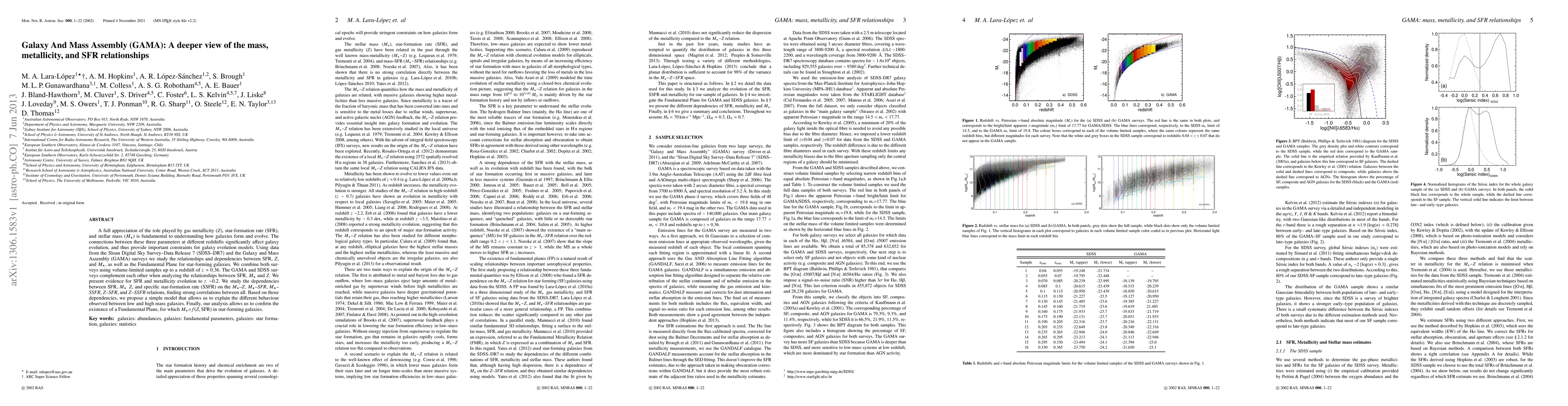 The GAMA survey, combined with SDSS data, reveals strong correlations between star-formation rate, metallicity, and stellar mass, proposing a model to explain their differing behaviors in low and high mass galaxies. The study confirms the existence of a Fundamental Plane for star-forming galaxies, where stellar mass is a function of metallicity and star-formation rate.