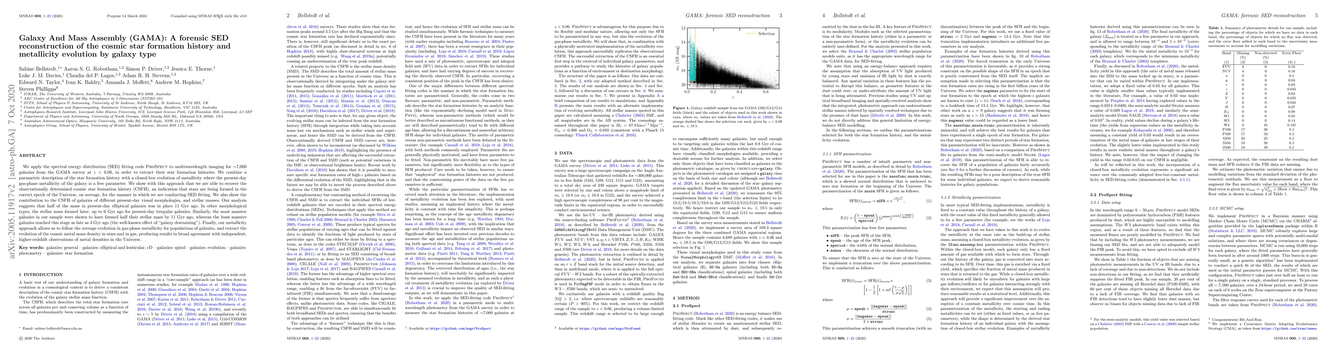 This paper uses SED fitting to reconstruct the cosmic star formation history and metallicity evolution across different galaxy types from the GAMA survey. It finds that star formation histories align with observations, with more massive galaxies forming half their mass 11 Gyr ago, while less massive galaxies formed theirs as recently as 4 Gyr ago.