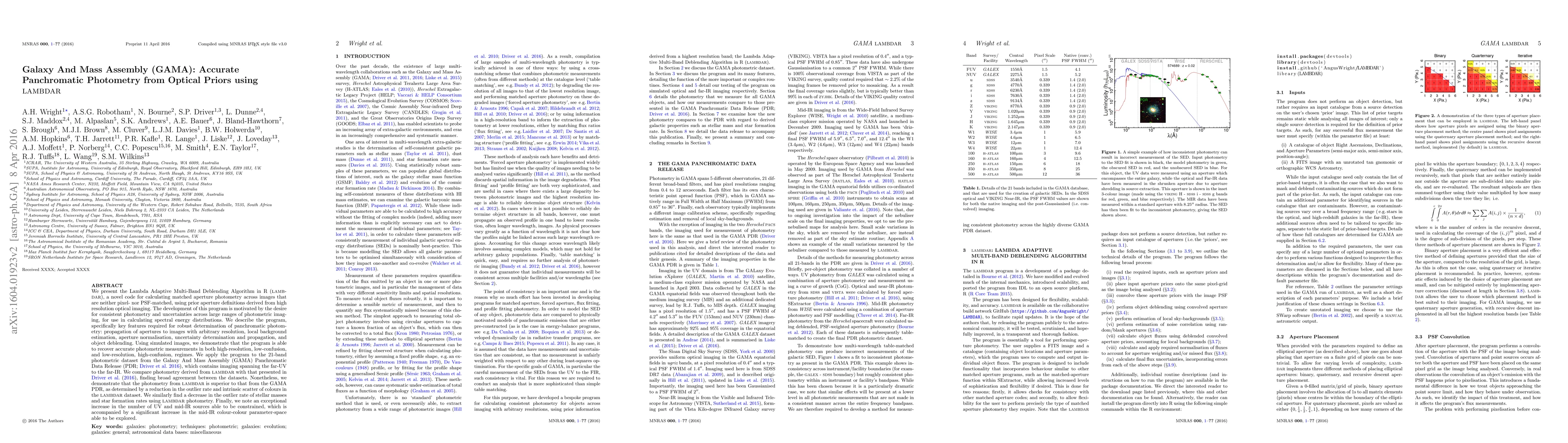 We present the Lambda Adaptive Multi-Band Deblending Algorithm in R (LAMBDAR), a novel code for calculating matched aperture photometry across images that are neither pixel- nor PSF-matched, using prior aperture definitions derived from high resolution optical imaging. The development of this program is motivated by the desire for consistent photometry and uncertainties across large ranges of photometric imaging, for use in calculating spectral energy distributions. We describe the program, specifically key features required for robust determination of panchromatic photometry: propagation of apertures to images with arbitrary resolution, local background estimation, aperture normalisation, uncertainty determination and propagation, and object deblending. Using simulated images, we demonstrate that the program is able to recover accurate photometric measurements in both high-resolution, low-confusion, and low-resolution, high-confusion, regimes. We apply the program to the 21-band photometric dataset from the Galaxy And Mass Assembly (GAMA) Panchromatic Data Release (PDR; Driver et al. 2016), which contains imaging spanning the far-UV to the far-IR. We compare photometry derived from LAMBDAR with that presented in Driver et al. (2016), finding broad agreement between the datasets. Nonetheless, we demonstrate that the photometry from LAMBDAR is superior to that from the GAMA PDR, as determined by a reduction in the outlier rate and intrinsic scatter of colours in the LAMBDAR dataset. We similarly find a decrease in the outlier rate of stellar masses and star formation rates using LAMBDAR photometry. Finally, we note an exceptional increase in the number of UV and mid-IR sources able to be constrained, which is accompanied by a significant increase in the mid-IR colour-colour parameter-space able to be explored.
