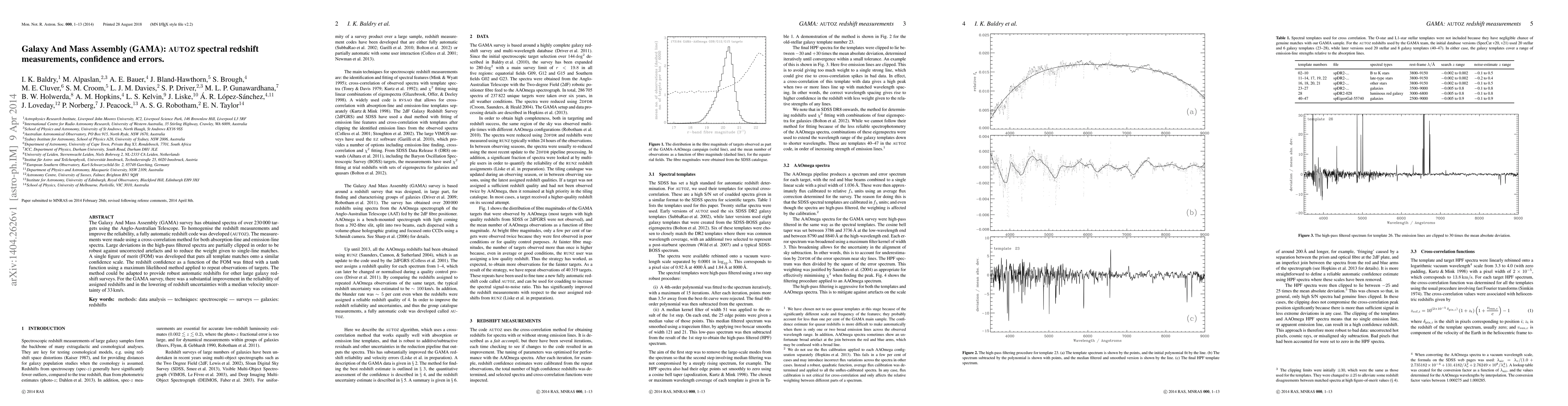The GAMA survey utilized an automatic redshift code (autoz) to homogenize and improve the reliability of spectral redshift measurements for over 230,000 targets, achieving a median velocity uncertainty of 33 km/s and reducing redshift errors. The method, adaptable to other large galaxy surveys, employs a cross-correlation method and a figure of merit to ensure robust and accurate redshift assignments.