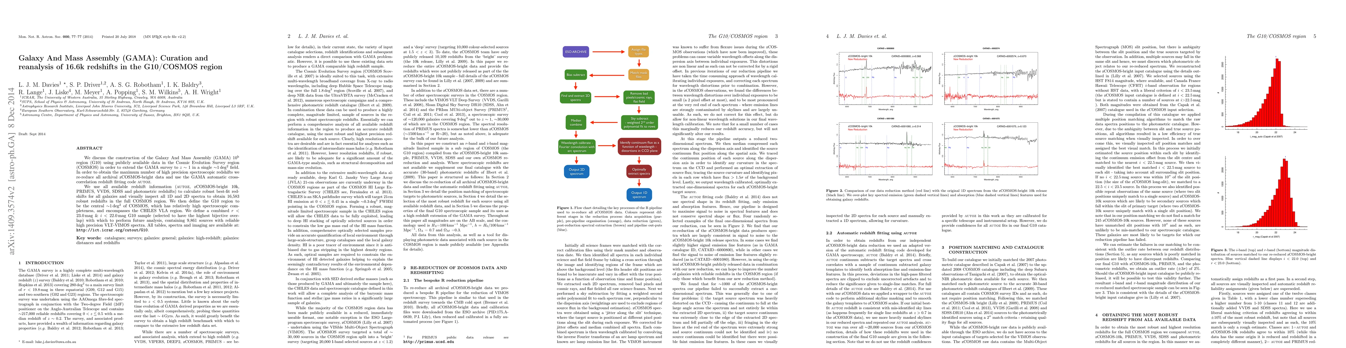 The GAMA survey extended to z~1 in the COSMOS region by curating and reanalyzing 16,583 high-precision spectroscopic redshifts using various data sources and automated fitting. The G10 region, a central ~1 deg^2 area within COSMOS, was selected for future analysis due to high spectroscopic completeness.
