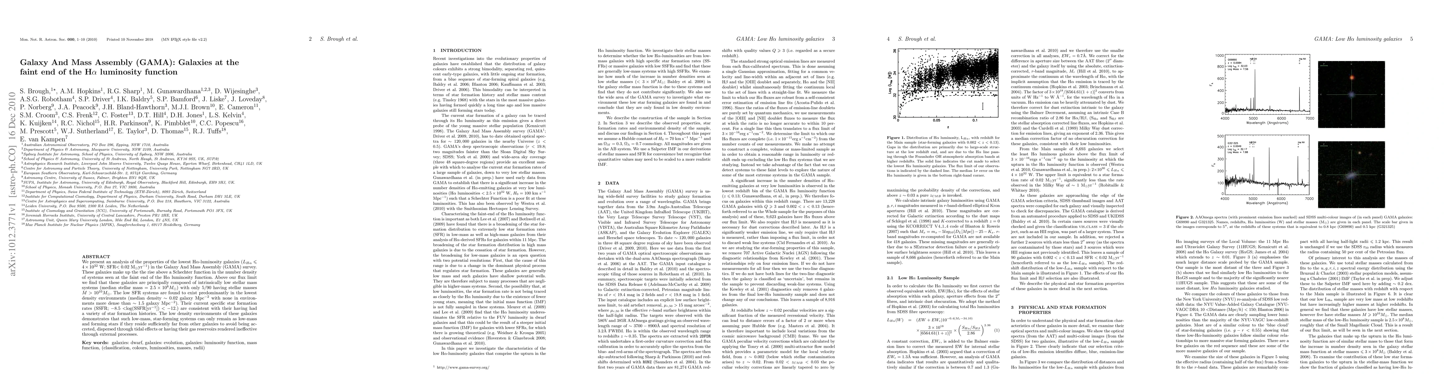This paper analyzes low Halpha-luminosity galaxies in the GAMA survey, finding they have low stellar masses and specific star formation rates, and predominantly exist in low-density environments, suggesting they remain low-mass due to isolation from denser regions.