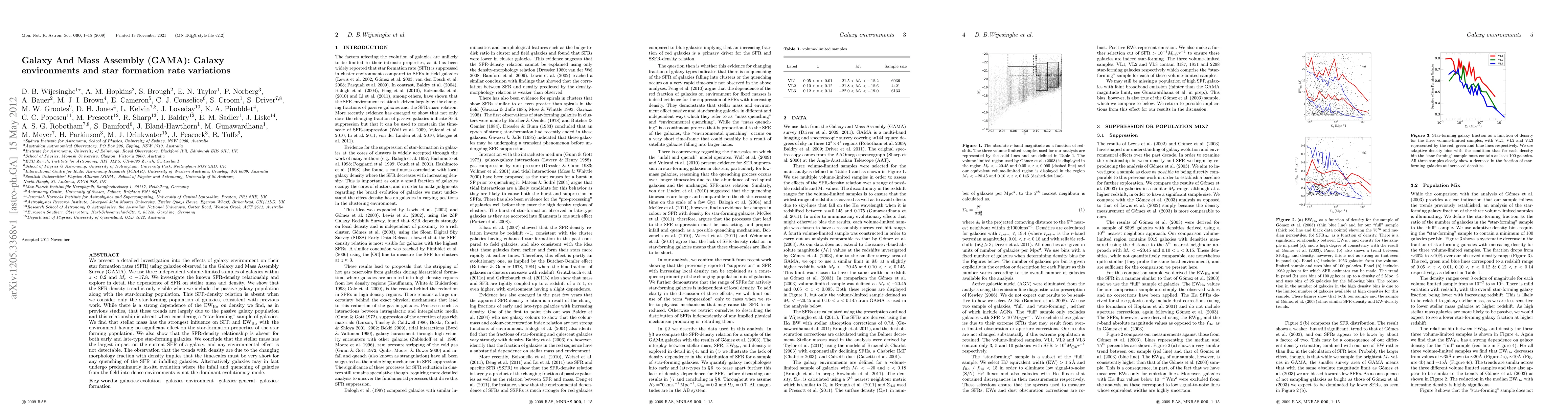 We present a detailed investigation into the effects of galaxy environment on their star formation rates (SFR) using galaxies observed in the Galaxy and Mass Assembly Survey (GAMA). We use three independent volume-limited samples of galaxies within z < 0.2 and Mr < -17.8. We investigate the known SFR-density relationship and explore in detail the dependence of SFR on stellar mass and density. We show that the SFR-density trend is only visible when we include the passive galaxy population along with the star-forming population. This SFR-density relation is absent when we consider only the star-forming population of galaxies, consistent with previous work. While there is a strong dependence of the EWH?a on density we find, as in previous studies, that these trends are largely due to the passive galaxy population and this relationship is absent when considering a "star-forming" sample of galaxies. We find that stellar mass has the strongest influence on SFR and EWH?a with the environment having no significant effect on the star-formation properties of the star forming population. We also show that the SFR-density relationship is absent for both early and late-type star-forming galaxies. We conclude that the stellar mass has the largest impact on the current SFR of a galaxy, and any environmental effect is not detectable. The observation that the trends with density are due to the changing morphology fraction with density implies that the timescales must be very short for any quenching of the SFR in infalling galaxies. Alternatively galaxies may in fact undergo predominantly in-situ evolution where the infall and quenching of galaxies from the field into dense environments is not the dominant evolutionary mode.