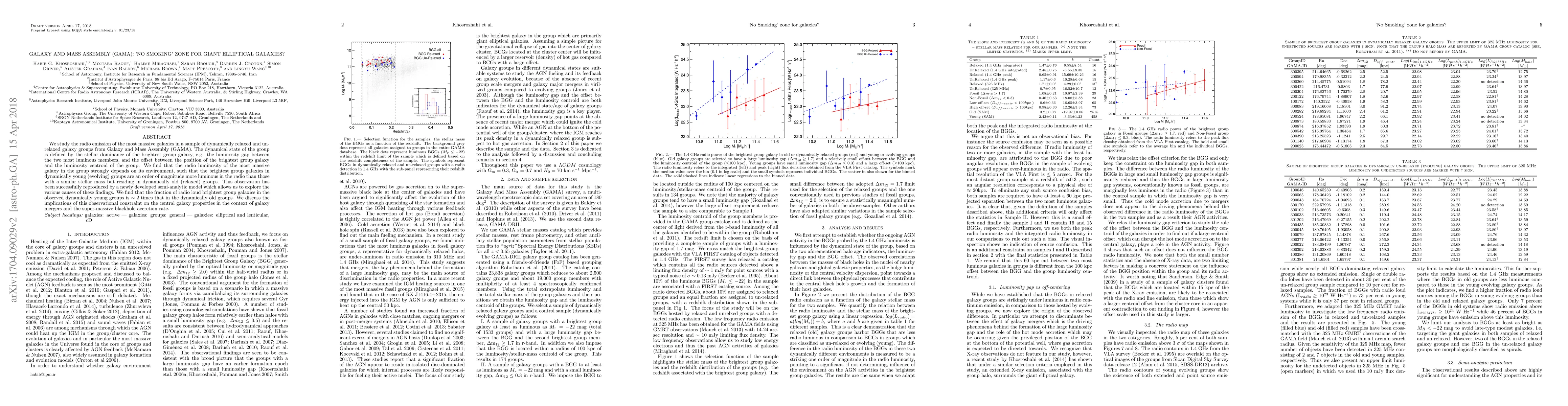 The GAMA study reveals that the radio luminosity of the most massive galaxies varies significantly with their group's dynamical state, with those in evolving groups being much more radio-loud than their counterparts in relaxed groups. This suggests a higher fraction of radio-loud galaxies in dynamically young groups, likely linked to galaxy mergers and black hole accretion rates.