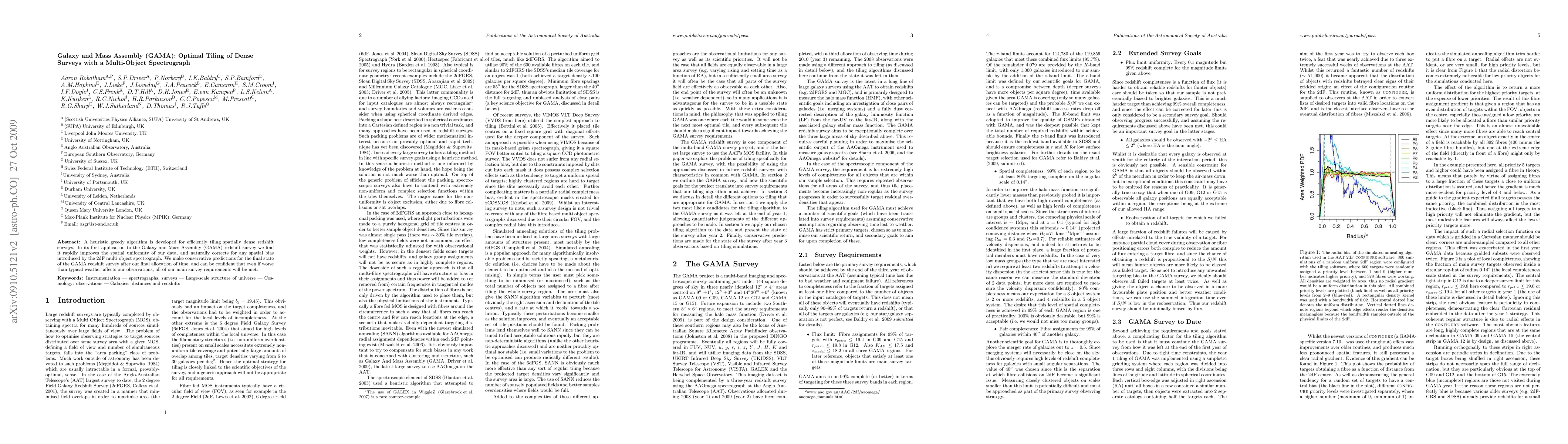 The paper presents a heuristic greedy algorithm to optimize the tiling of dense galaxy redshift surveys, significantly improving the spatial uniformity of the GAMA survey and correcting for instrument biases. The method ensures that the GAMA survey will meet its main requirements despite potential adverse weather conditions.