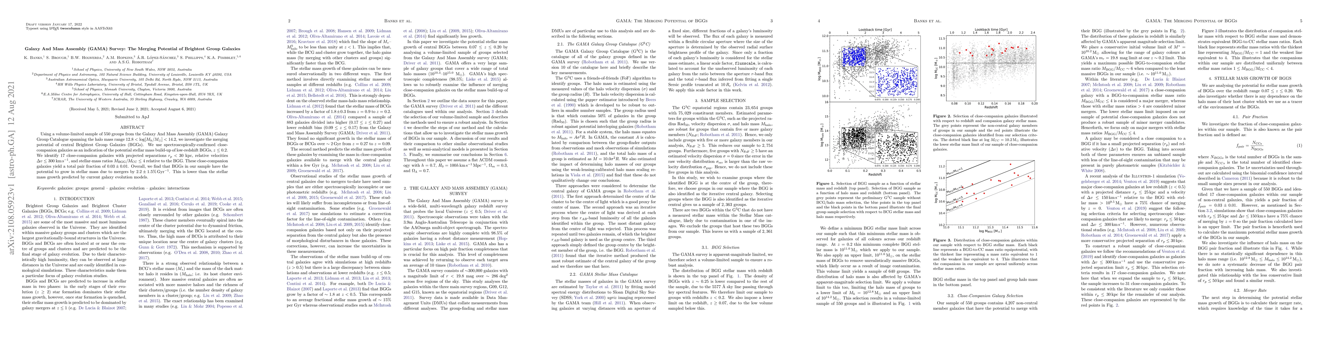 The GAMA Survey investigates the merging potential of Brightest Group Galaxies (BGGs) in 550 groups, finding 17 close-companion galaxies indicating a pair fraction of 0.03 ± 0.01. BGGs show potential for stellar mass growth via mergers at a rate of 2.2 ± 1.5% Gyr$^{-1}$, lower than current models predict.