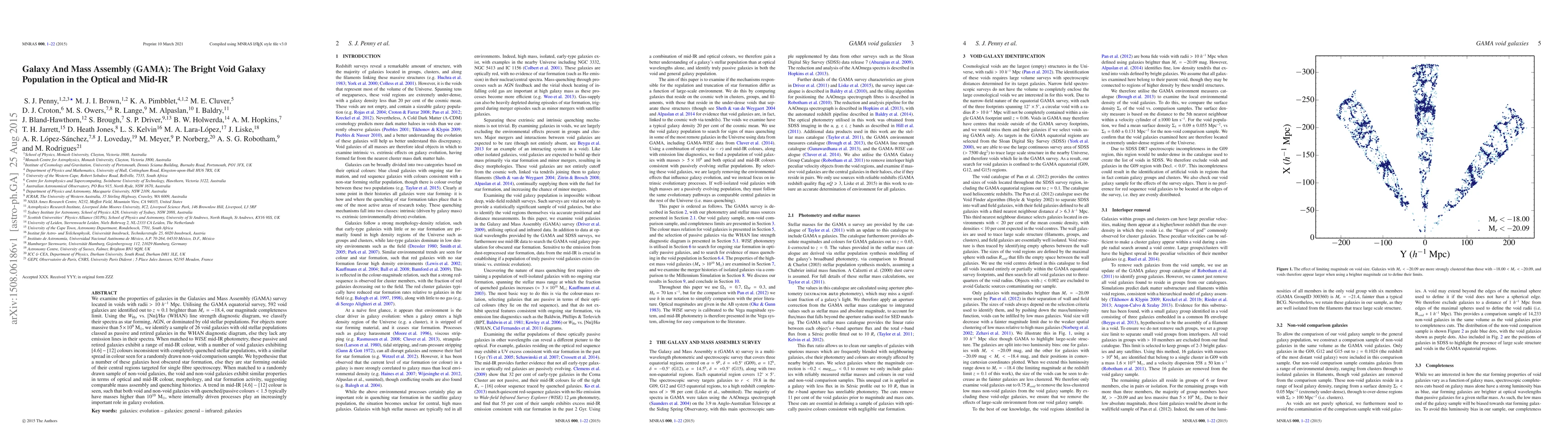 We examine the properties of galaxies in the Galaxies and Mass Assembly (GAMA) survey located in voids with radii $>10~h^{-1}$ Mpc. Utilising the GAMA equatorial survey, 592 void galaxies are identified out to z~0.1 brighter than $M_{r} = -18.4$, our magnitude completeness limit. Using the $W_{\rm{H\alpha}}$ vs. [NII]/H$\alpha$ (WHAN) line strength diagnostic diagram, we classify their spectra as star forming, AGN, or dominated by old stellar populations. For objects more massive than $5\times10^{9}$ M$_{\odot}$, we identify a sample of 26 void galaxies with old stellar populations classed as passive and retired galaxies in the WHAN diagnostic diagram, else they lack any emission lines in their spectra. When matched to WISE mid-IR photometry, these passive and retired galaxies exhibit a range of mid-IR colour, with a number of void galaxies exhibiting [4.6]-[12] colours inconsistent with completely quenched stellar populations, with a similar spread in colour seen for a randomly drawn non-void comparison sample. We hypothesise that a number of these galaxies host obscured star formation, else they are star forming outside of their central regions targeted for single fibre spectroscopy. When matched to a randomly drawn sample of non-void galaxies, the void and non-void galaxies exhibit similar properties in terms of optical and mid-IR colour, morphology, and star formation activity, suggesting comparable mass assembly and quenching histories. A trend in mid-IR [4.6]-[12] colour is seen, such that both void and non-void galaxies with quenched/passive colours <1.5 typically have masses higher than $10^{10}$ M$_{\odot}$, where internally driven processes play an increasingly important role in galaxy evolution.