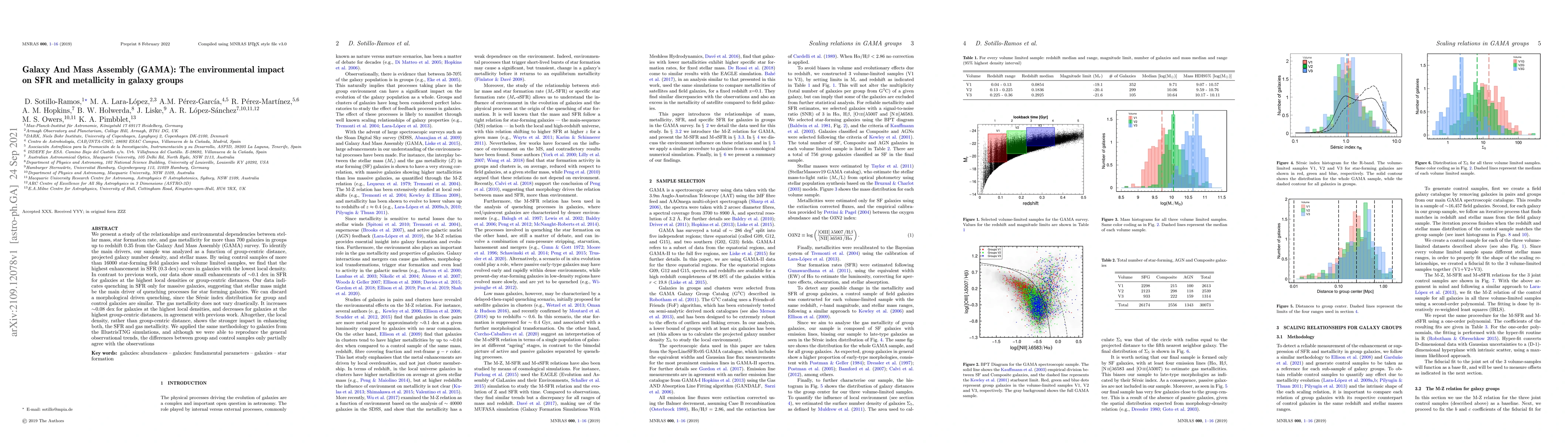 We present a study of the relationships and environmental dependencies between stellar mass, star formation rate, and gas metallicity for more than 700 galaxies in groups up to redshift 0.35 from the Galaxy And Mass Assembly (GAMA) survey. To identify the main drivers, our sample was analyzed as a function of group-centric distance, projected galaxy number density, and stellar mass. By using control samples of more than 16000 star-forming field galaxies and volume limited samples, we find that the highest enhancement in SFR (0.3 dex) occurs in galaxies with the lowest local density. In contrast to previous work, our data show small enhancements of $\sim$0.1 dex in SFR for galaxies at the highest local densities or group-centric distances. Our data indicates quenching in SFR only for massive galaxies, suggesting that stellar mass might be the main driver of quenching processes for star forming galaxies. We can discard a morphological driven quenching, since the S\'ersic index distribution for group and control galaxies are similar. The gas metallicity does not vary drastically. It increases $\sim$0.08 dex for galaxies at the highest local densities, and decreases for galaxies at the highest group-centric distances, in agreement with previous work. Altogether, the local density, rather than group-centric distance, shows the stronger impact in enhancing both, the SFR and gas metallicity. We applied the same methodology to galaxies from the IllustrisTNG simulations, and although we were able to reproduce the general observational trends, the differences between group and control samples only partially agree with the observations