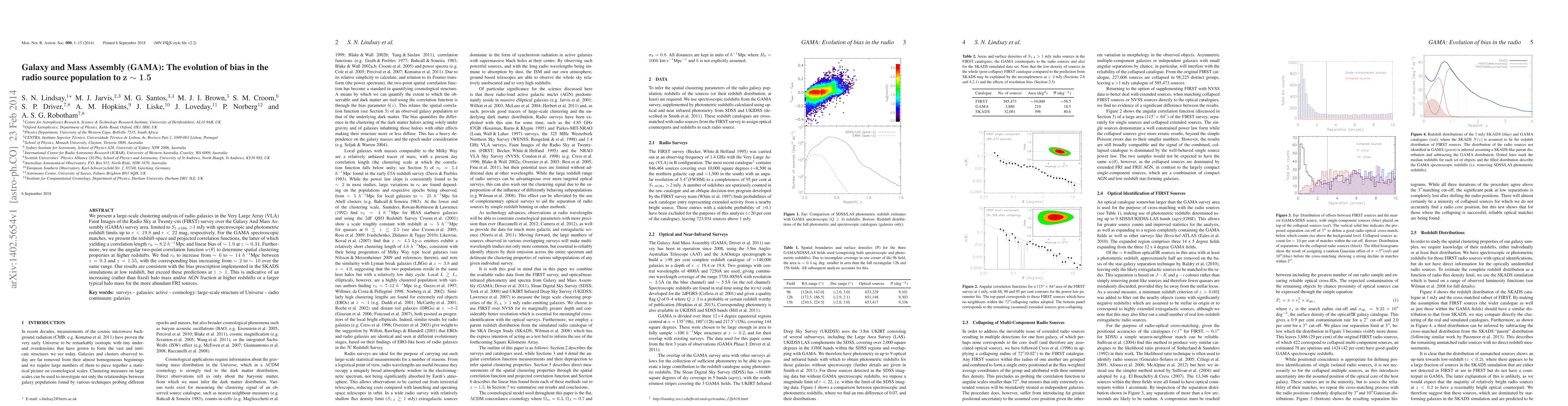 We present a large-scale clustering analysis of radio galaxies in the Very Large Array (VLA) Faint Images of the Radio Sky at Twenty-cm (FIRST) survey over the Galaxy And Mass Assembly (GAMA) survey area, limited to S1.4 GHz >1 mJy with spectroscopic and photometric redshift limits up to r < 19.8 and r < 22 mag, respectively. For the GAMA spectroscopic matches, we present the redshift-space and projected correlation functions, the latter of which yielding a correlation length r0 ~ 8.2 Mpc/h and linear bias of ~1.9 at z ~ 0.34. Furthermore, we use the angular two-point correlation function w({\theta}) to determine spatial clustering properties at higher redshifts. We find r0 to increase from ~6 to ~14 Mpc/h between z = 0.3 and z = 1.55, with the corresponding bias increasing from ~2 to ~10 over the same range. Our results are consistent with the bias prescription implemented in the SKADS simulations at low redshift, but exceed these predictions at z > 1. This is indicative of an increasing (rather than fixed) halo mass and/or AGN fraction at higher redshifts or a larger typical halo mass for the more abundant FRI sources.
