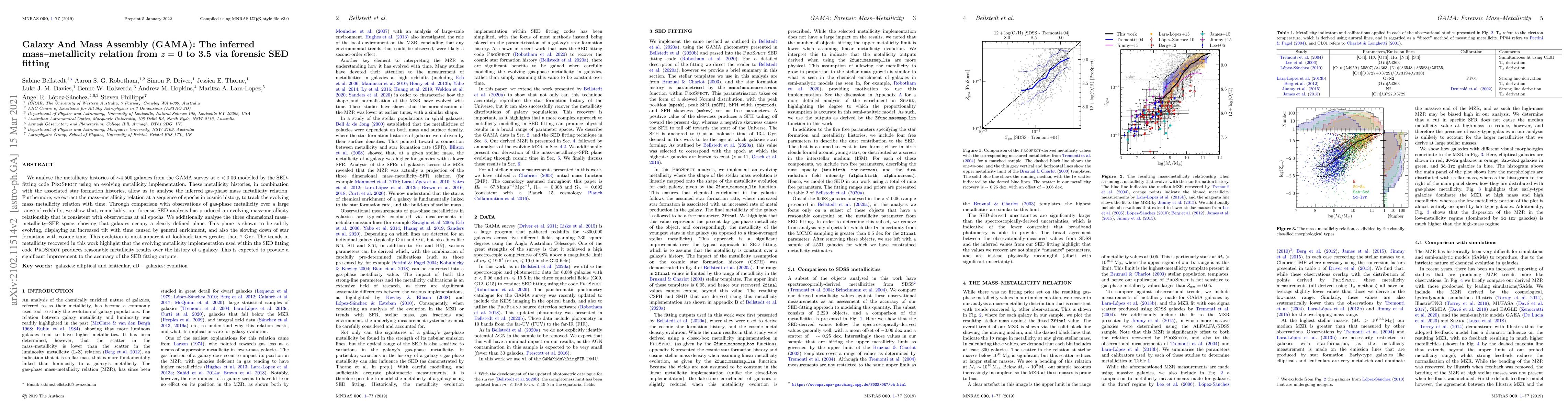 We analyse the metallicity histories of ~4,500 galaxies from the GAMA survey at z<0.06 modelled by the SED-fitting code ProSpect using an evolving metallicity implementation. These metallicity histories, in combination with the associated star formation histories, allow us to analyse the inferred gas-phase mass--metallicity relation. Furthermore, we extract the mass--metallicity relation at a sequence of epochs in cosmic history, to track the evolving mass--metallicity relation with time. Through comparison with observations of gas-phase metallicity over a large range of redshifts, we show that, remarkably, our forensic SED analysis has produced an evolving mass--metallicity relationship that is consistent with observations at all epochs. We additionally analyse the three dimensional mass--metallicity--SFR space, showing that galaxies occupy a clearly defined plane. This plane is shown to be subtly evolving, displaying an increased tilt with time caused by general enrichment, and also the slowing down of star formation with cosmic time. This evolution is most apparent at lookback times greater than 7 Gyr. The trends in metallicity recovered in this work highlight that the evolving metallicity implementation used within the SED fitting code ProSpect produces reasonable metallicity results over the history of a galaxy. This is expected to provide a significant improvement to the accuracy of the SED fitting outputs.