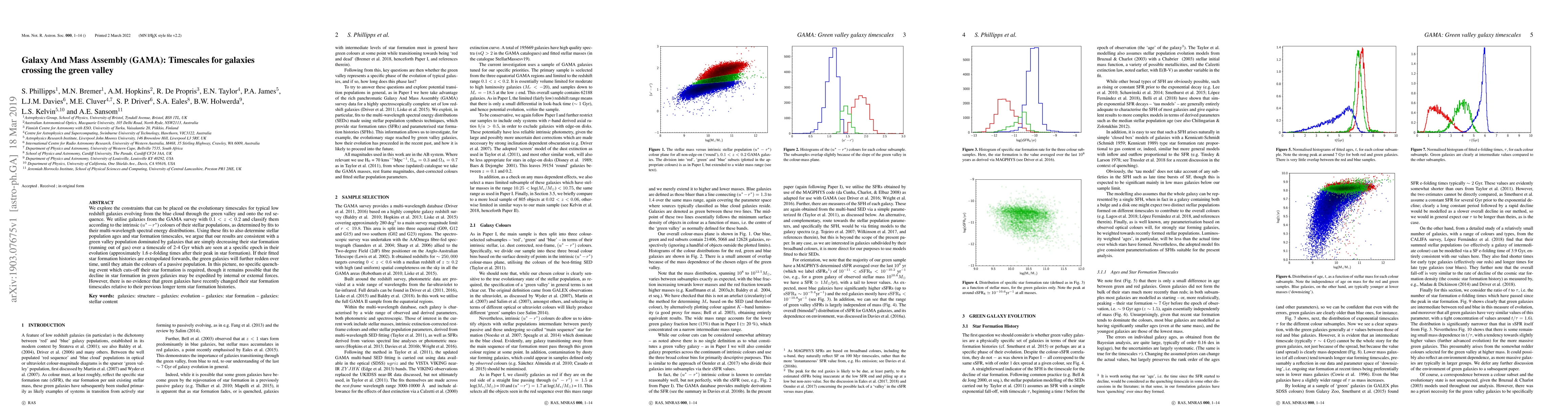 The GAMA survey reveals that galaxies transitioning from the blue cloud to the green valley typically take 2-4 Gyr to decrease star formation, with no evidence of recent changes in their star formation timescales. This transition is characterized by galaxies running out of gas, leading to eventual reddening and passive evolution.