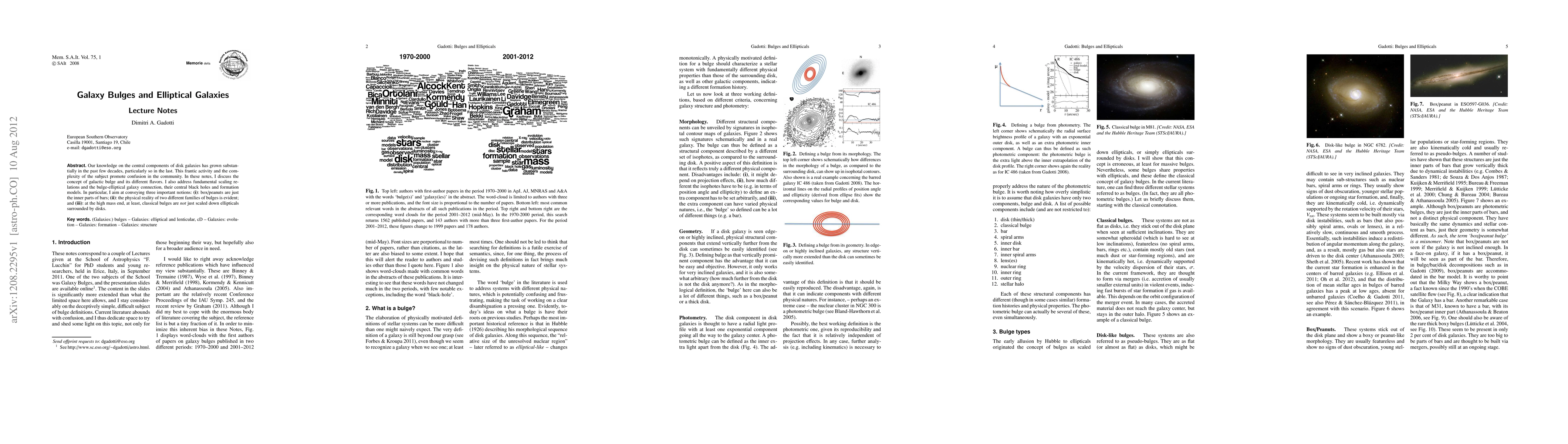Our knowledge on the central components of disk galaxies has grown substantially in the past few decades, particularly so in the last. This frantic activity and the complexity of the subject promote confusion in the community. In these notes, I discuss the concept of galactic bulge and its different flavors. I also address fundamental scaling relations and the bulge-elliptical galaxy connection, their central black holes and formation models. In particular, I aim at conveying three important notions: (i): box/peanuts are just the inner parts of bars; (ii): the physical reality of two different families of bulges is evident; and (iii): at the high mass end, at least, classical bulges are not just scaled down ellipticals surrounded by disks.