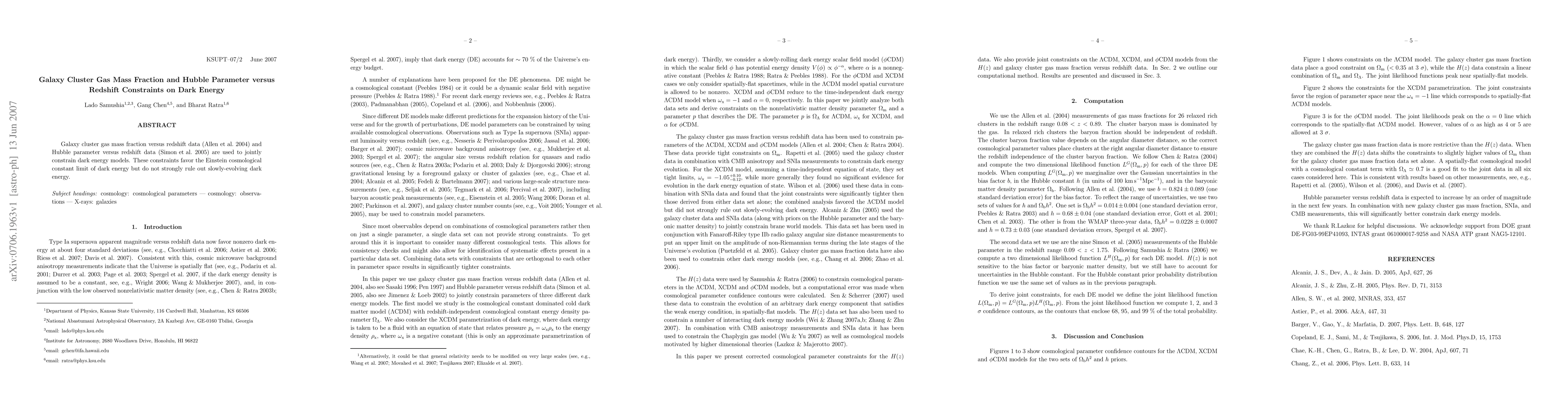 Summary: This study uses galaxy cluster gas mass fraction and Hubble parameter data across different redshifts to constrain dark energy models, favoring the cosmological constant but not excluding slowly-evolving dark energy alternatives.