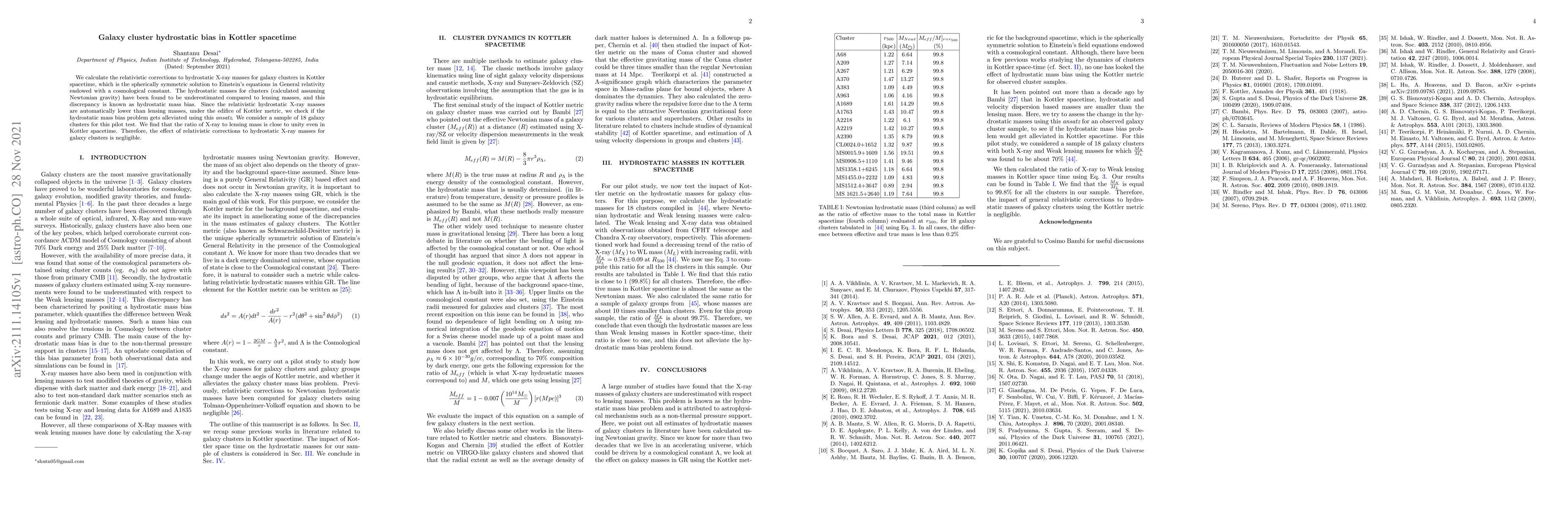 We calculate the relativistic corrections to hydrostatic X-ray masses for galaxy clusters in Kottler spacetime, which is the spherically symmetric solution to Einstein's equations in General relativity endowed with a cosmological constant. The hydrostatic masses for clusters (calculated assuming Newtonian gravity) have been found to be underestimated compared to lensing masses, and this discrepancy is known as hydrostatic mass bias. Since the relativistic hydrostatic X-ray masses are automatically lower than lensing masses, under the edifice of Kottler metric, we check if the hydrostatic mass bias problem gets alleviated using this {\it ansatz}. We consider a sample of 18 galaxy clusters for this pilot test. We find that the ratio of X-ray to lensing mass is close to unity even in Kottler spacetime. Therefore, the effect of relativistic corrections to hydrostatic X-ray masses for galaxy clusters is negligible.
