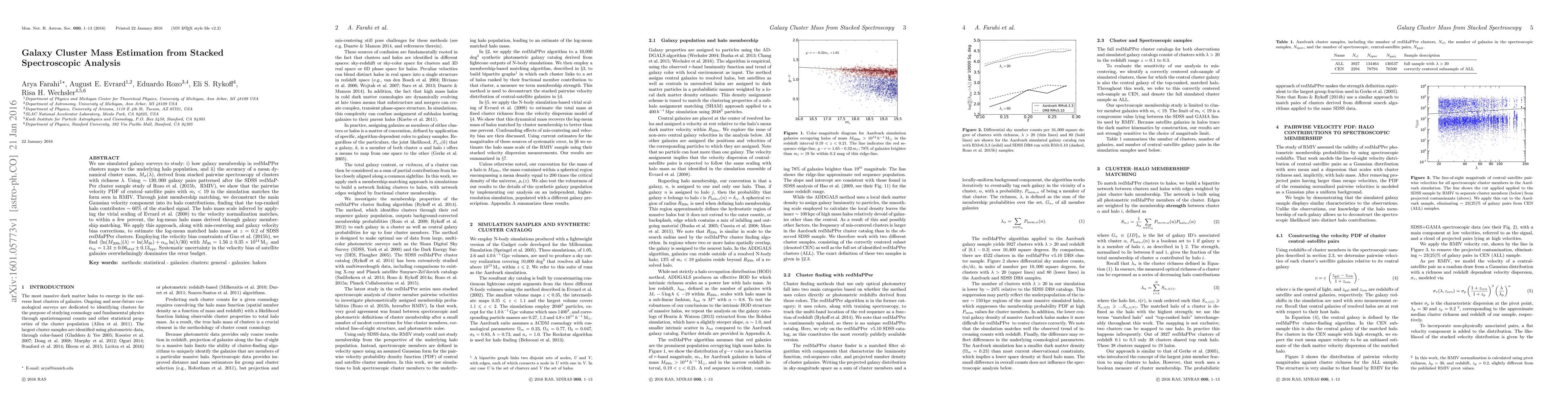This paper estimates galaxy cluster masses using stacked spectroscopic analysis of galaxy pairs, finding that the top-ranked halo contributes about 60% of the signal. The method yields a log-mean matched halo mass for SDSS redMaPPer clusters at $z=0.2$, with systematic uncertainties primarily driven by satellite galaxy velocity bias.
