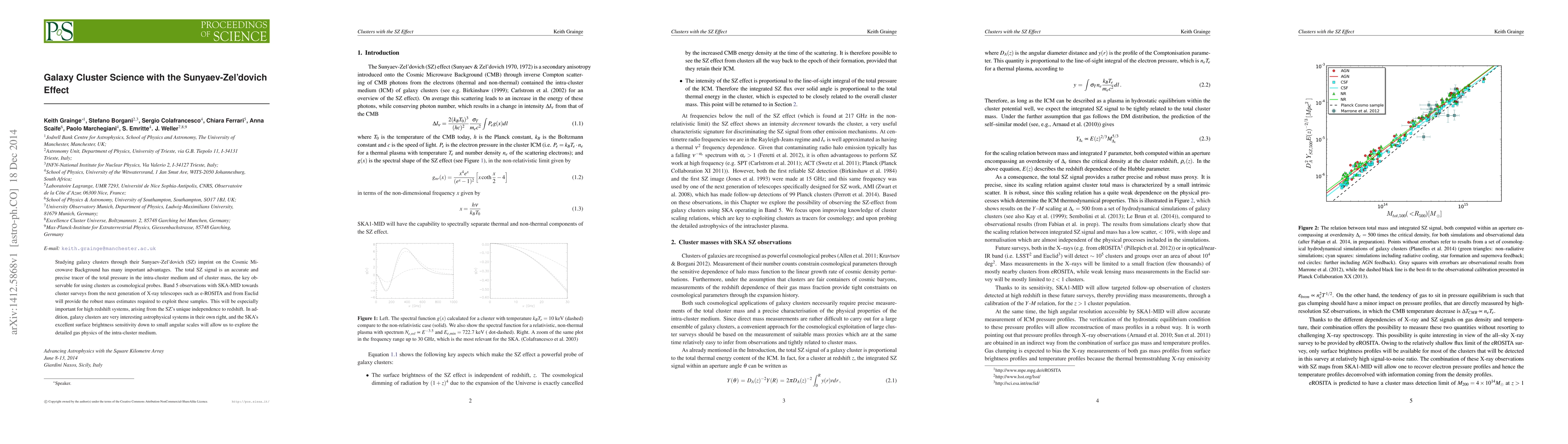 This paper explores the use of the Sunyaev-Zel'dovich (SZ) effect to study galaxy clusters, highlighting its advantages as a precise tracer of intra-cluster medium pressure and mass. Upcoming SKA-MID and next-gen X-ray telescopes will enhance mass estimates, particularly for high-redshift clusters, leveraging the SZ effect's redshift independence.