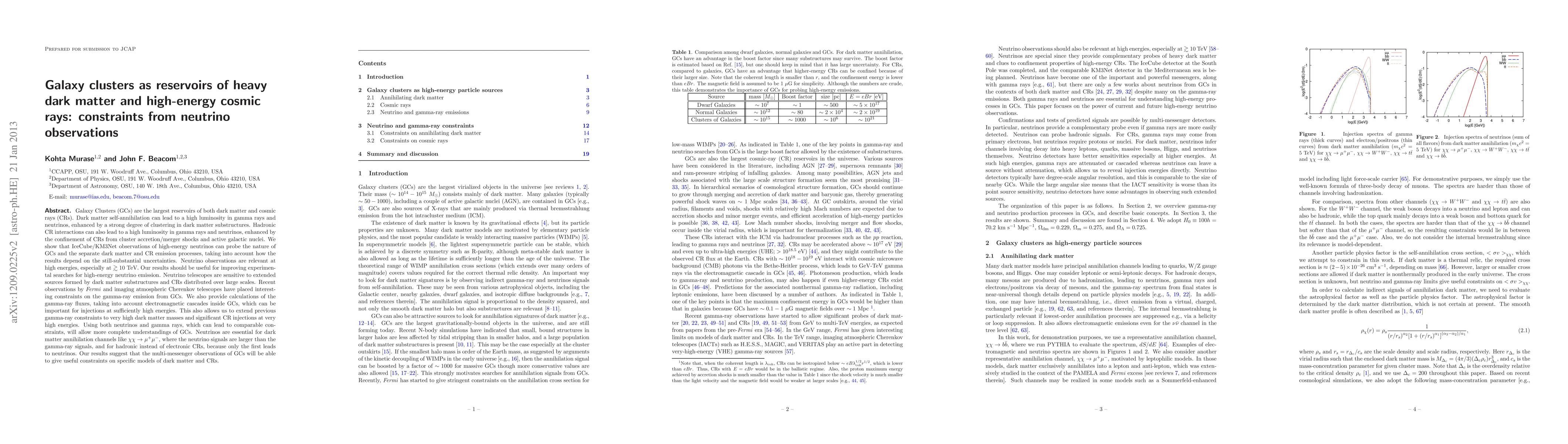 This paper investigates galaxy clusters as potential sources of heavy dark matter and high-energy cosmic rays, using neutrino observations from IceCube/KM3Net to probe these phenomena. It highlights the importance of multi-messenger approaches combining neutrinos and gamma rays for better constraints on dark matter and cosmic ray models.