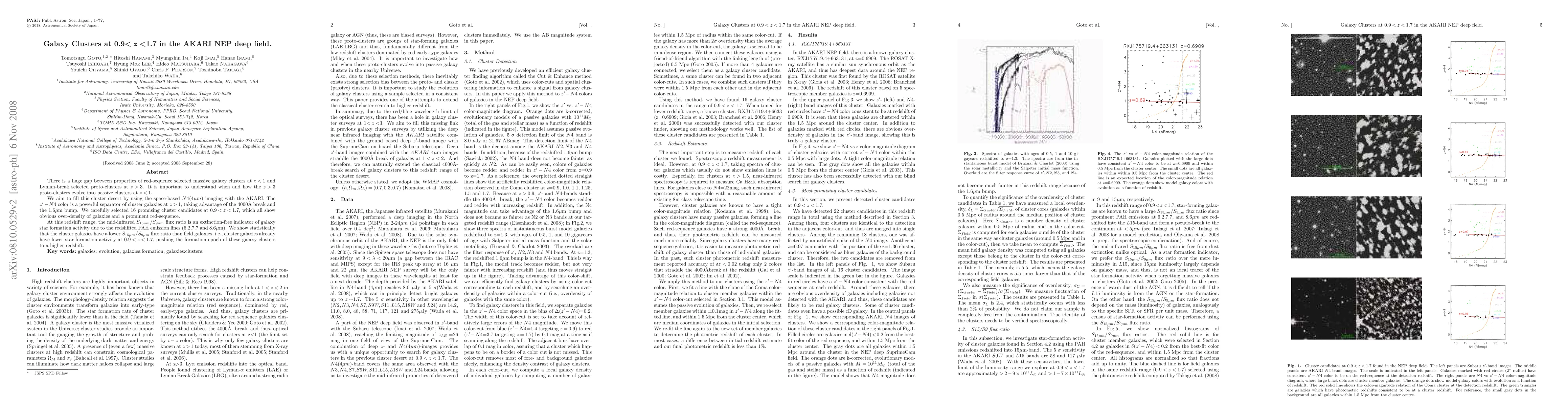 with the AKARI. The z'-N4 color is a powerful separator of cluster galaxies at