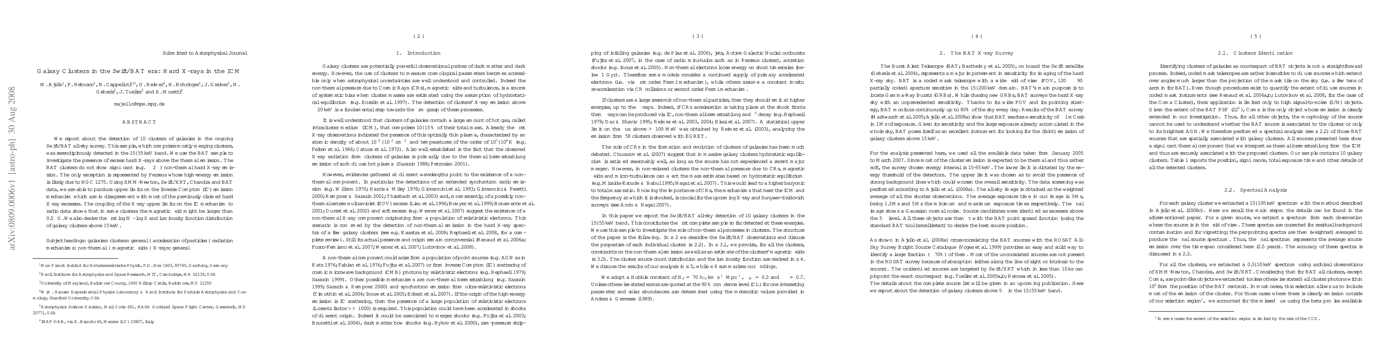 A team of researchers analyzed 10 galaxy clusters in the Swift/BAT era, finding no significant hard X-ray emission above thermal emission, except for one cluster with a possible exception due to NGC 1275.