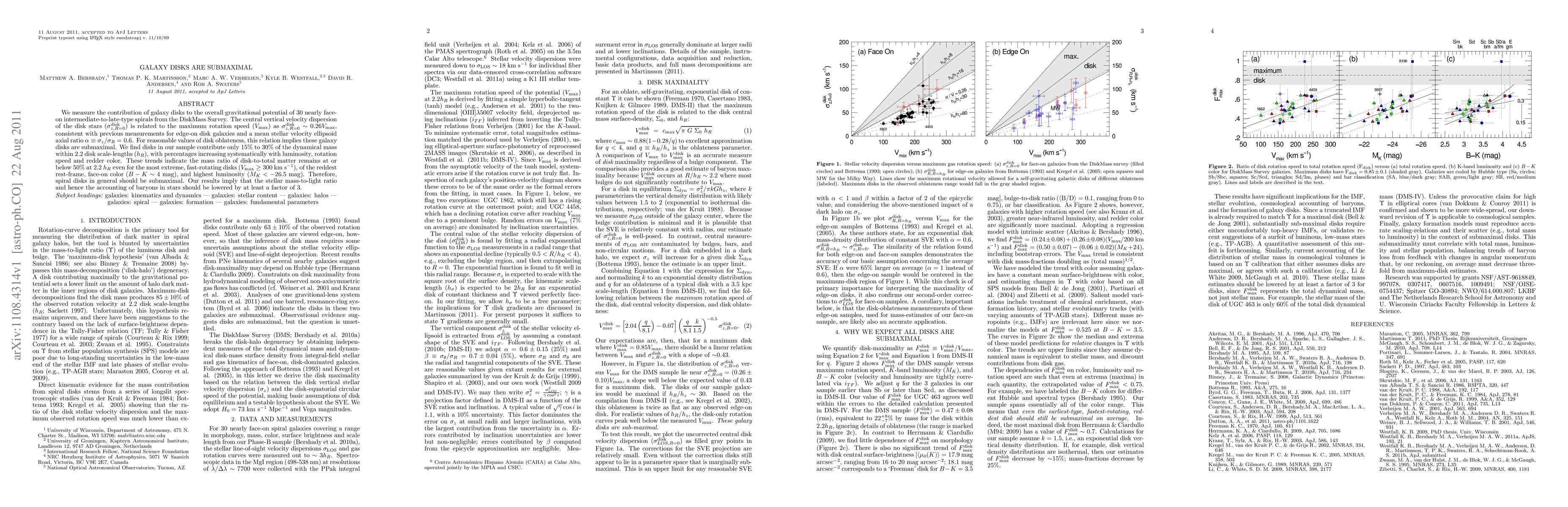 We measure the contribution of galaxy disks to the overall gravitational potential of 30 nearly face-on intermediate-to-late-type spirals from the DiskMass Survey. The central vertical velocity dispersion of the disk stars, sigma(z,R=0), is related to the maximum rotation speed (Vmax) as sigma(z,R=0) ~ 0.26 Vmax, consistent with previous measurements for edge-on disk galaxies and a mean stellar velocity ellipsoid axial ratio sigma(z) / sigma(R) = 0.6. For reasonable values of disk oblateness, this relation implies these galaxy disks are submaximal. We find disks in our sample contribute only 15% to 30% of the dynamical mass within 2.2 disk scale-lengths (hR), with percentages increasing systematically with luminosity, rotation speed and redder color. These trends indicate the mass ratio of disk-to-total matter remains at or below 50% at 2.2 hR even for the most extreme, fast-rotating disks (Vmax > 300 km/s), of the reddest rest-frame, face-on color (B-K ~ 4 mag), and highest luminosity (M(K)<-26.5 mag). Therefore, spiral disks in general should be submaximal. Our results imply that the stellar mass-to-light ratio and hence the accounting of baryons in stars should be lowered by at least a factor of 3.