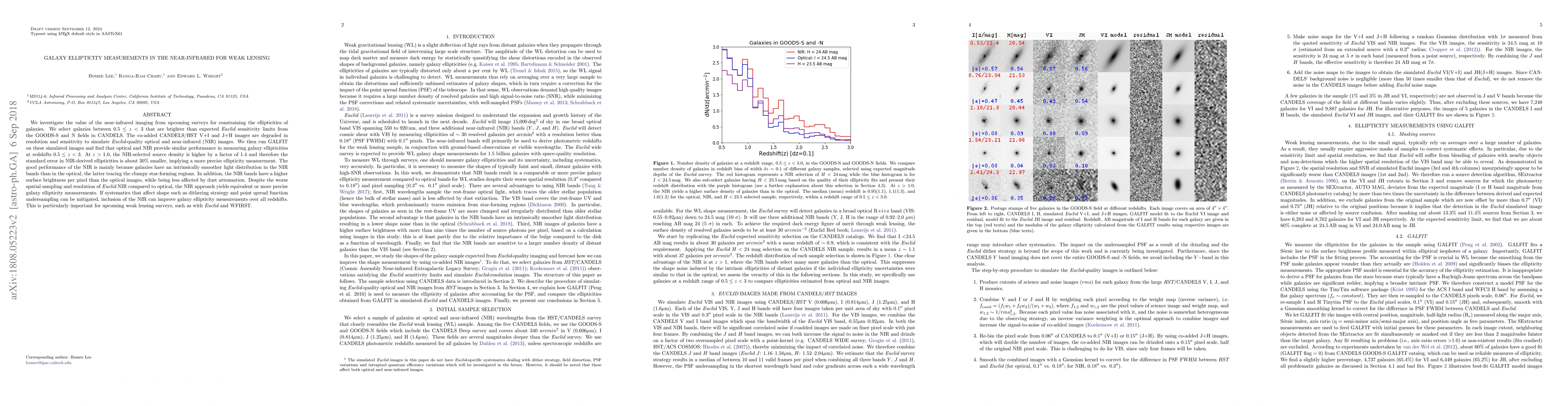 Using near-infrared images from upcoming surveys, researchers found that they provide similar performance to optical images for measuring galaxy ellipticities, with a 30% smaller standard error at higher redshifts.