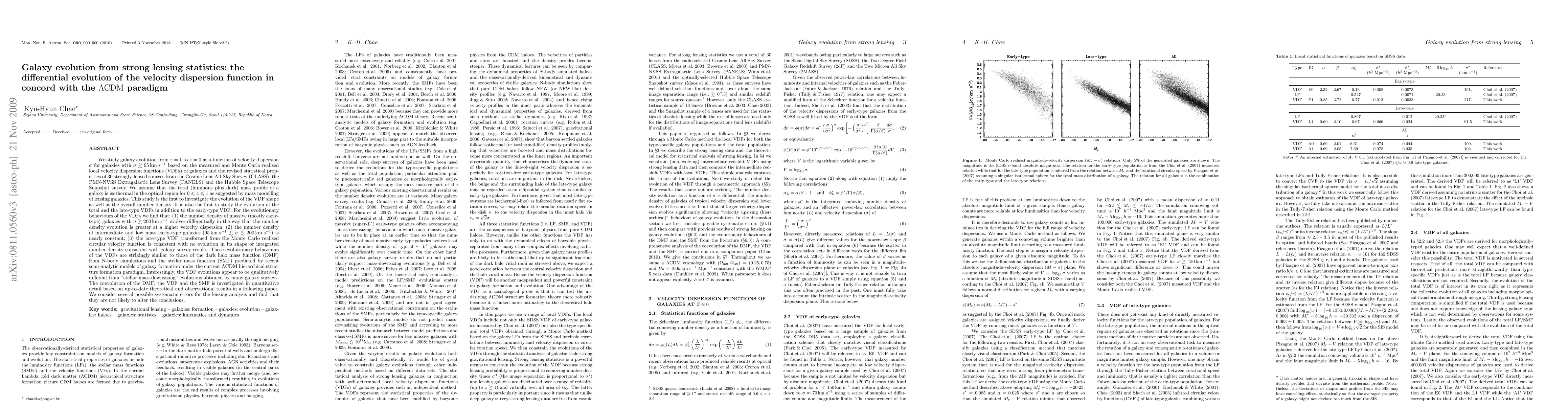 This paper investigates galaxy evolution from z=1 to z=0 focusing on velocity dispersion functions (VDFs) for galaxies with sigma > 95 km/s, finding differential evolution in massive galaxies. The study aligns with the LambdaCDM model, showing that high-velocity dispersion galaxies evolve more rapidly, while intermediate and late-type galaxies show little change.