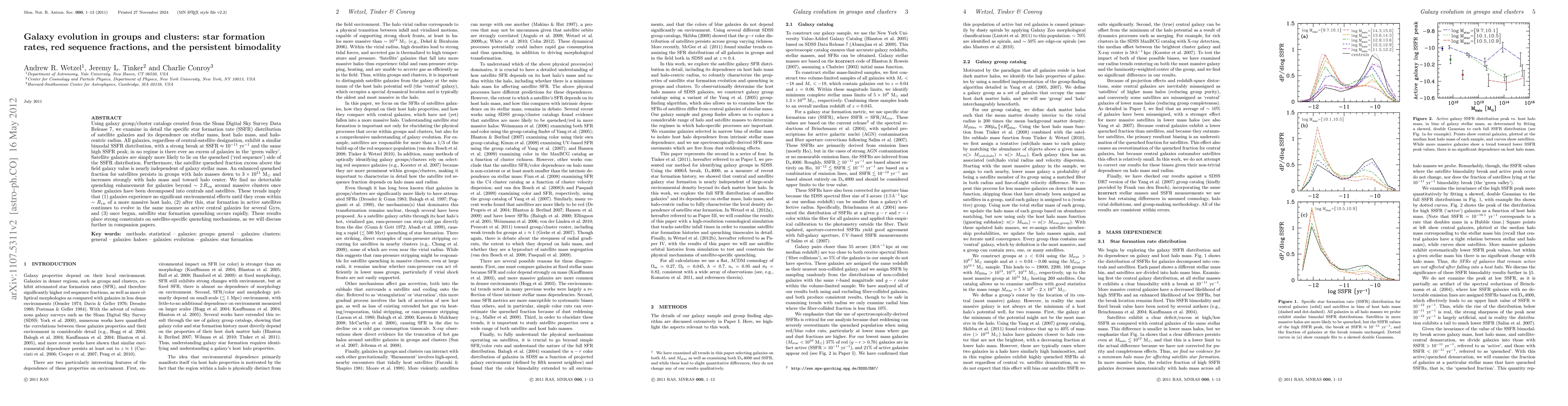 Galaxies in satellite positions show similar star formation rates as central galaxies, with a strong break at low rates and no 'green valley', suggesting no environmental effects until they cross the host halo radius.