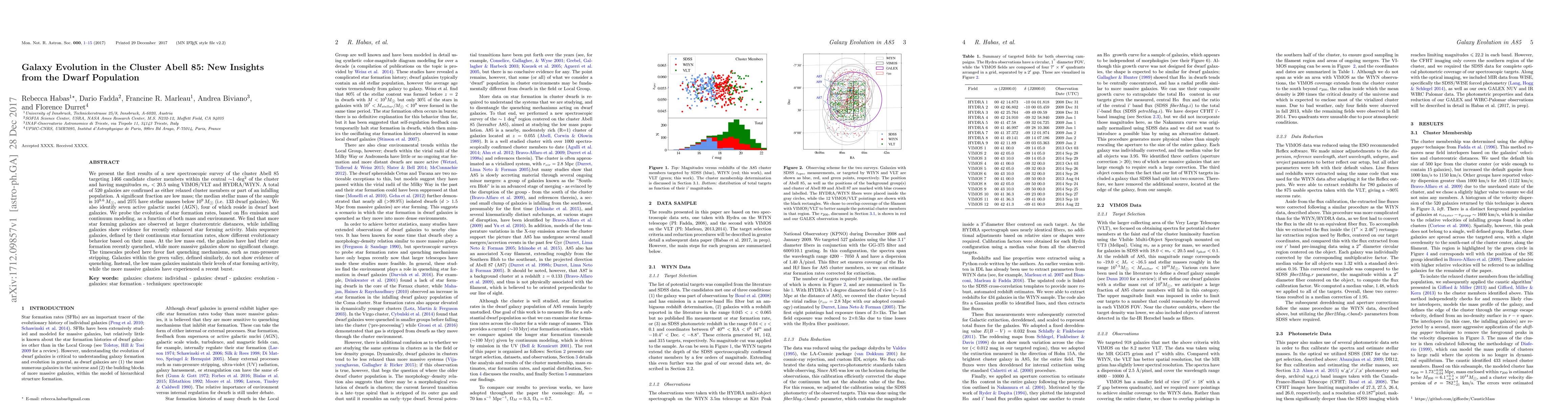 A study of galaxy evolution in cluster Abell 85 reveals that low-mass galaxies have recently quenched their star-forming activity, while more massive galaxies show no significant change, indicating fast quenching mechanisms such as ram-pressure stripping.