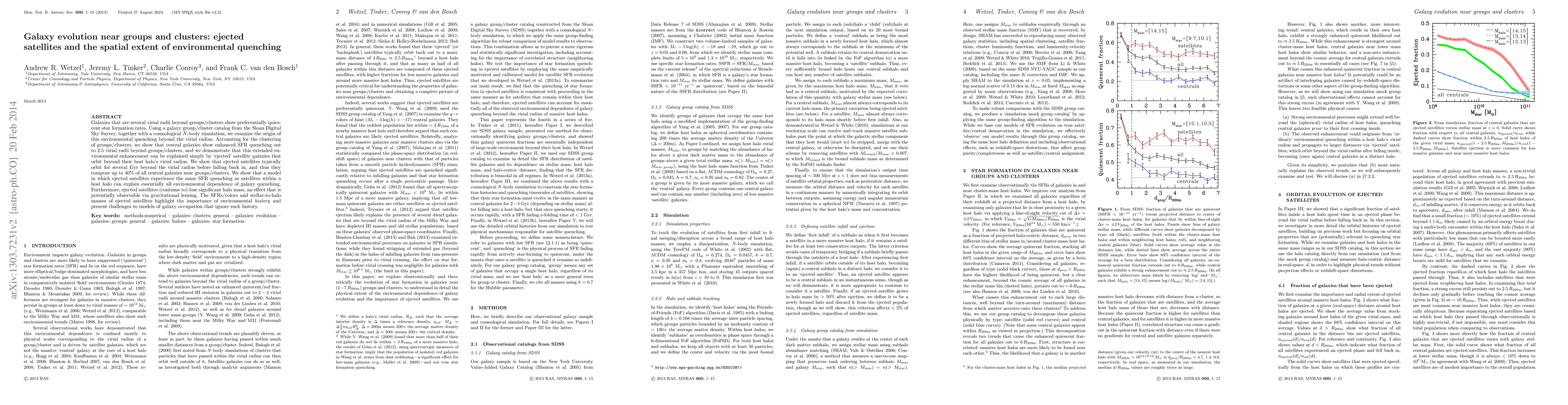 This paper investigates the environmental quenching of galaxies beyond group/cluster virial radii, finding that ejected satellite galaxies contribute significantly to this effect. The study shows that ejected satellites, which orbit several Gyr before falling back, account for up to 40% of central galaxies near groups/clusters and can explain the extended environmental quenching effect.