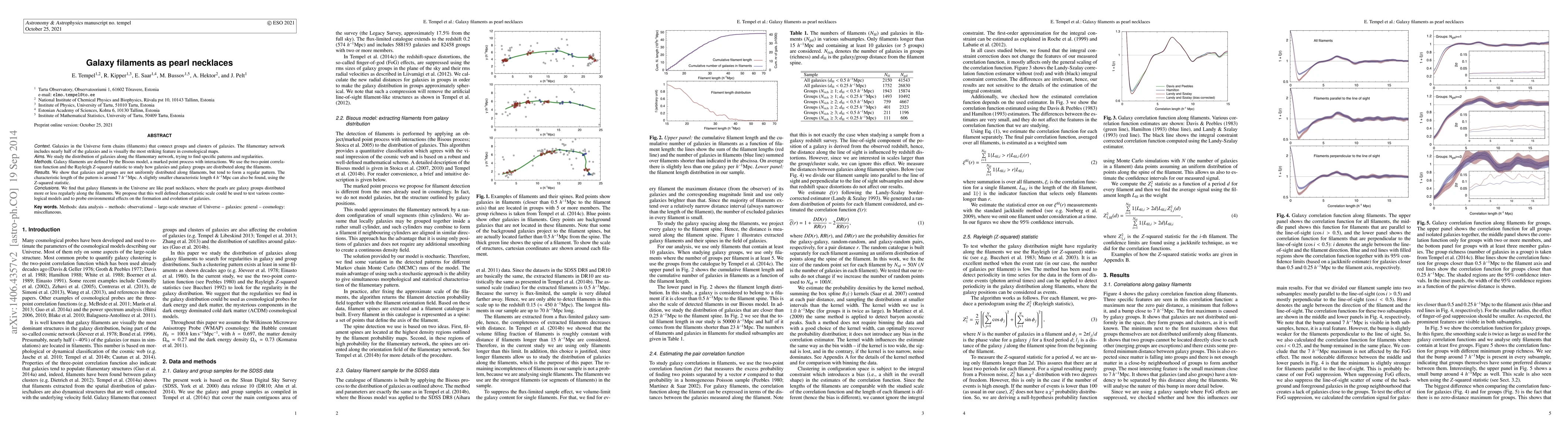 Galaxy filaments in the universe exhibit a regular pattern of galaxy groups spaced approximately 7 Mpc/h apart, resembling pearl necklaces.