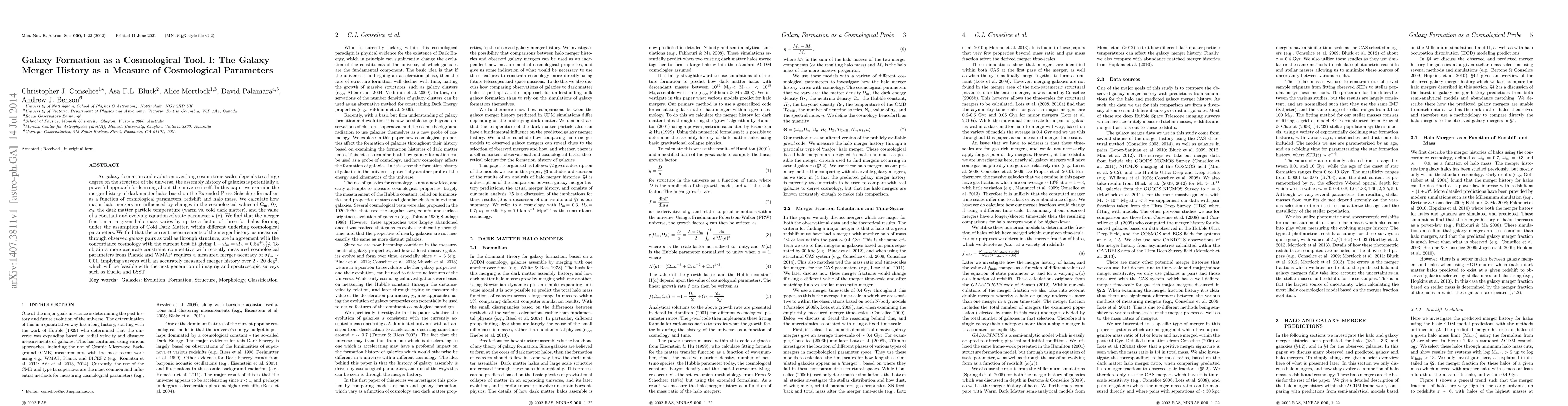 A study uses galaxy merger history to constrain cosmological parameters like dark matter and dark energy, finding that current measurements agree with concordance cosmology but require further refinement for competitive constraints.