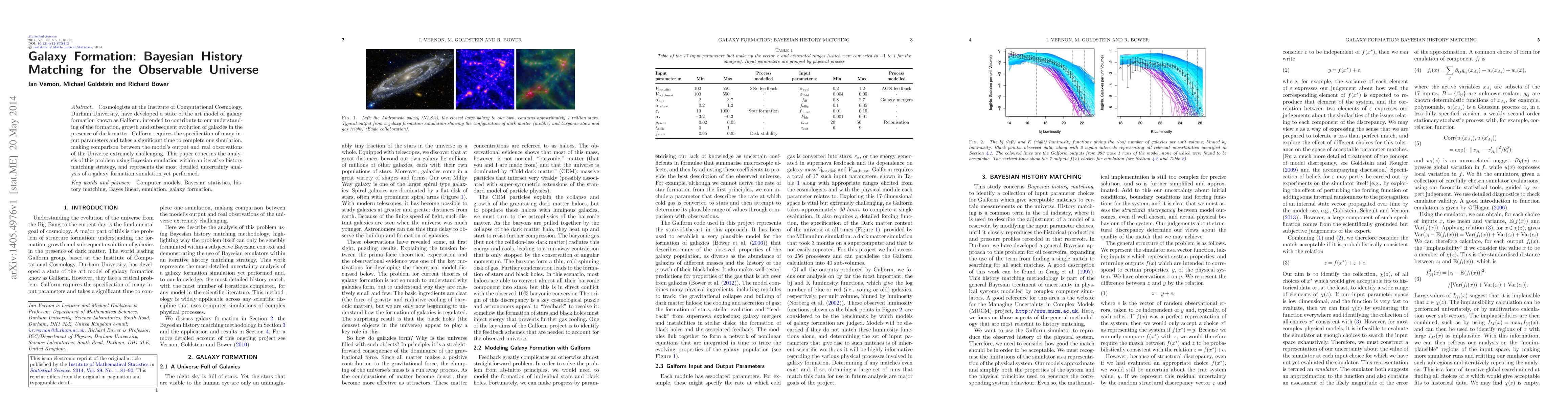 Cosmologists at the Institute of Computational Cosmology, Durham University, have developed a state of the art model of galaxy formation known as Galform, intended to contribute to our understanding of the formation, growth and subsequent evolution of galaxies in the presence of dark matter. Galform requires the specification of many input parameters and takes a significant time to complete one simulation, making comparison between the model's output and real observations of the Universe extremely challenging. This paper concerns the analysis of this problem using Bayesian emulation within an iterative history matching strategy, and represents the most detailed uncertainty analysis of a galaxy formation simulation yet performed.